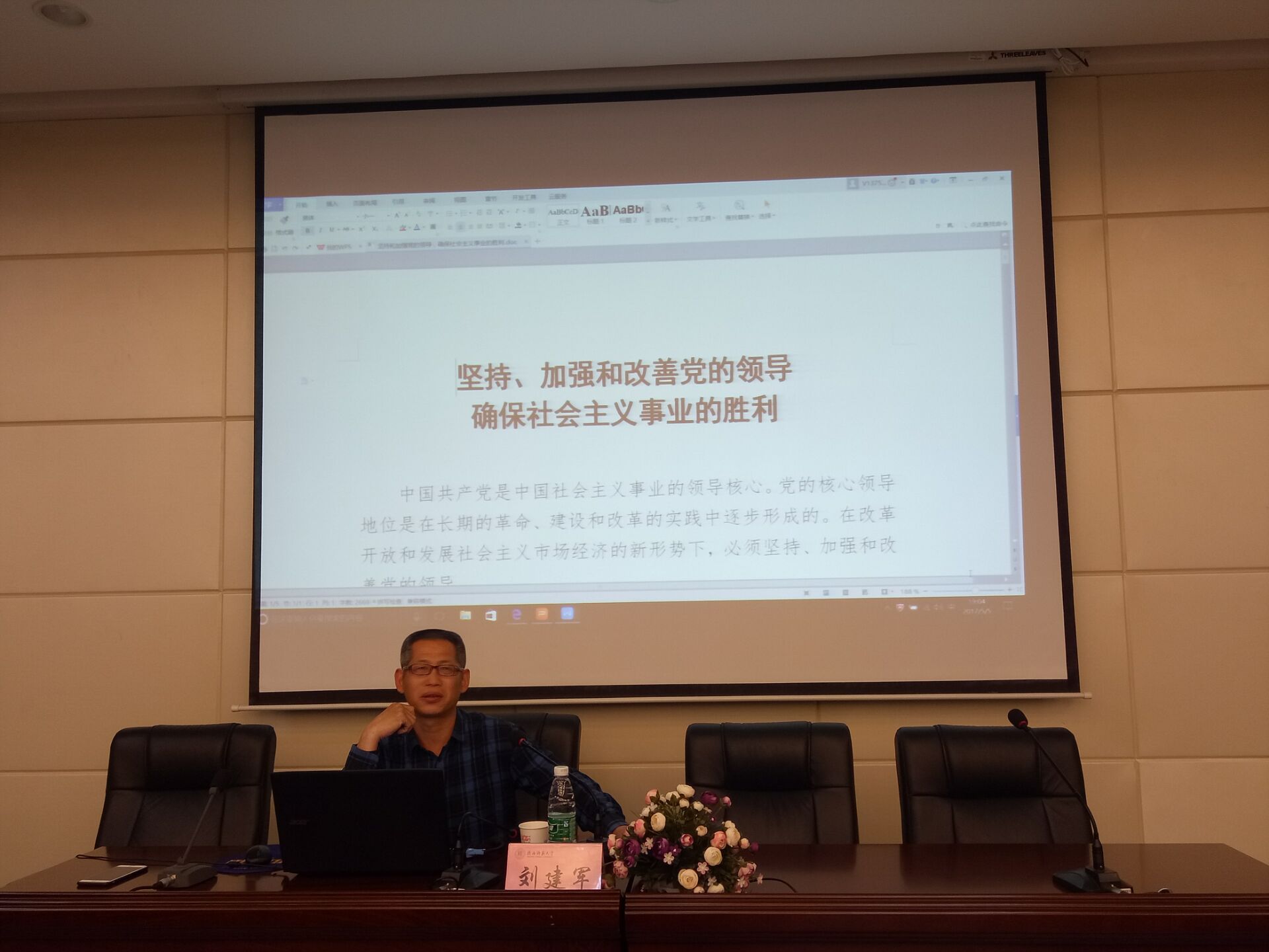刘建军老师以“坚持、加强和改善党的领导,确保社会主义事业的胜利”为主题,讲述了党在社会主义建设中不断改善自身,取得伟大成就的光辉历史,并指出要以史为鉴,学习经验、吸取教训,始终保持党的先进性,确保党的领导核心地位。同时,寄予在场员工以殷切期望,祖国的未来要靠青年去创造,广大学子要树立远大理想,增强自身理论素质,为社会主义建设多做贡献。