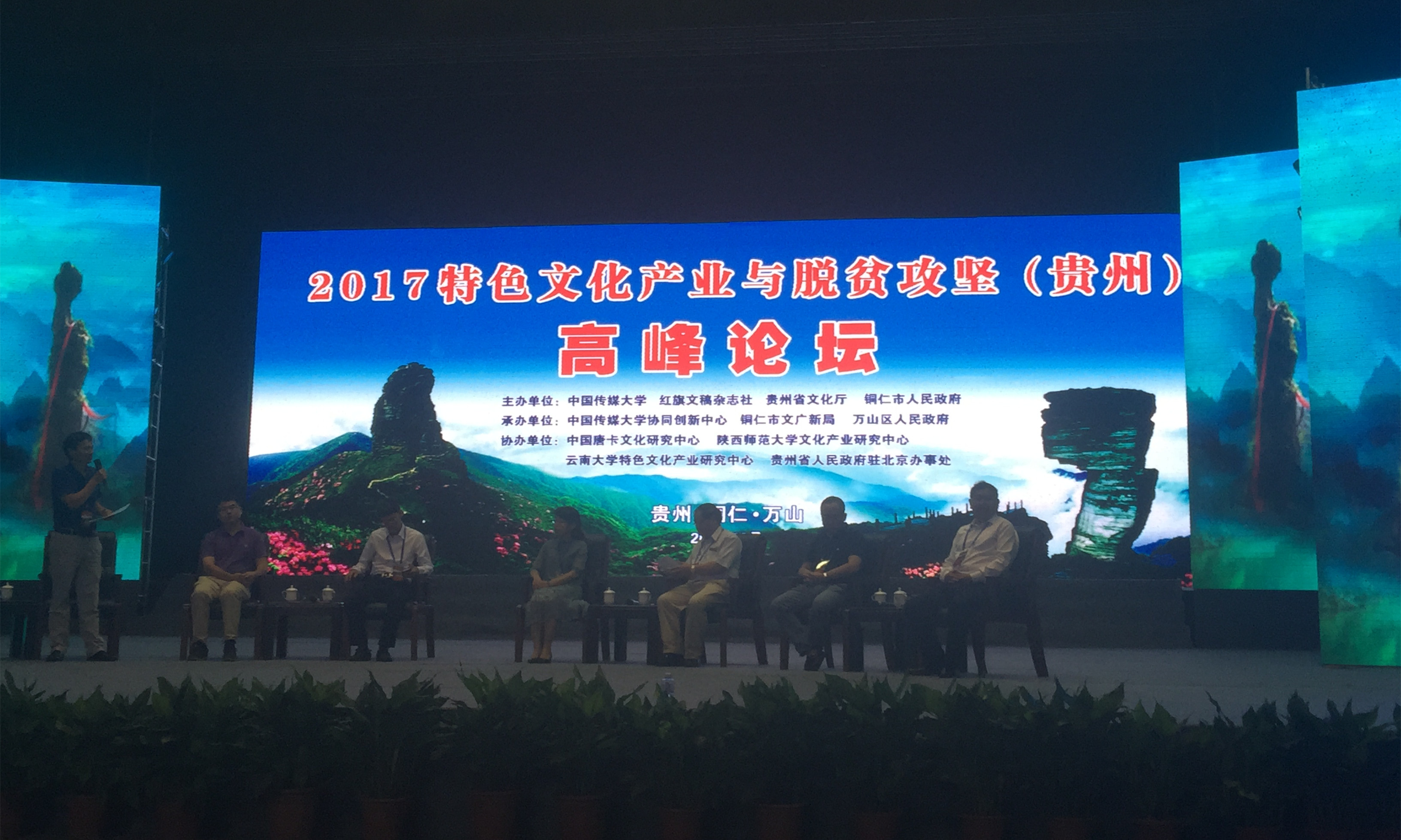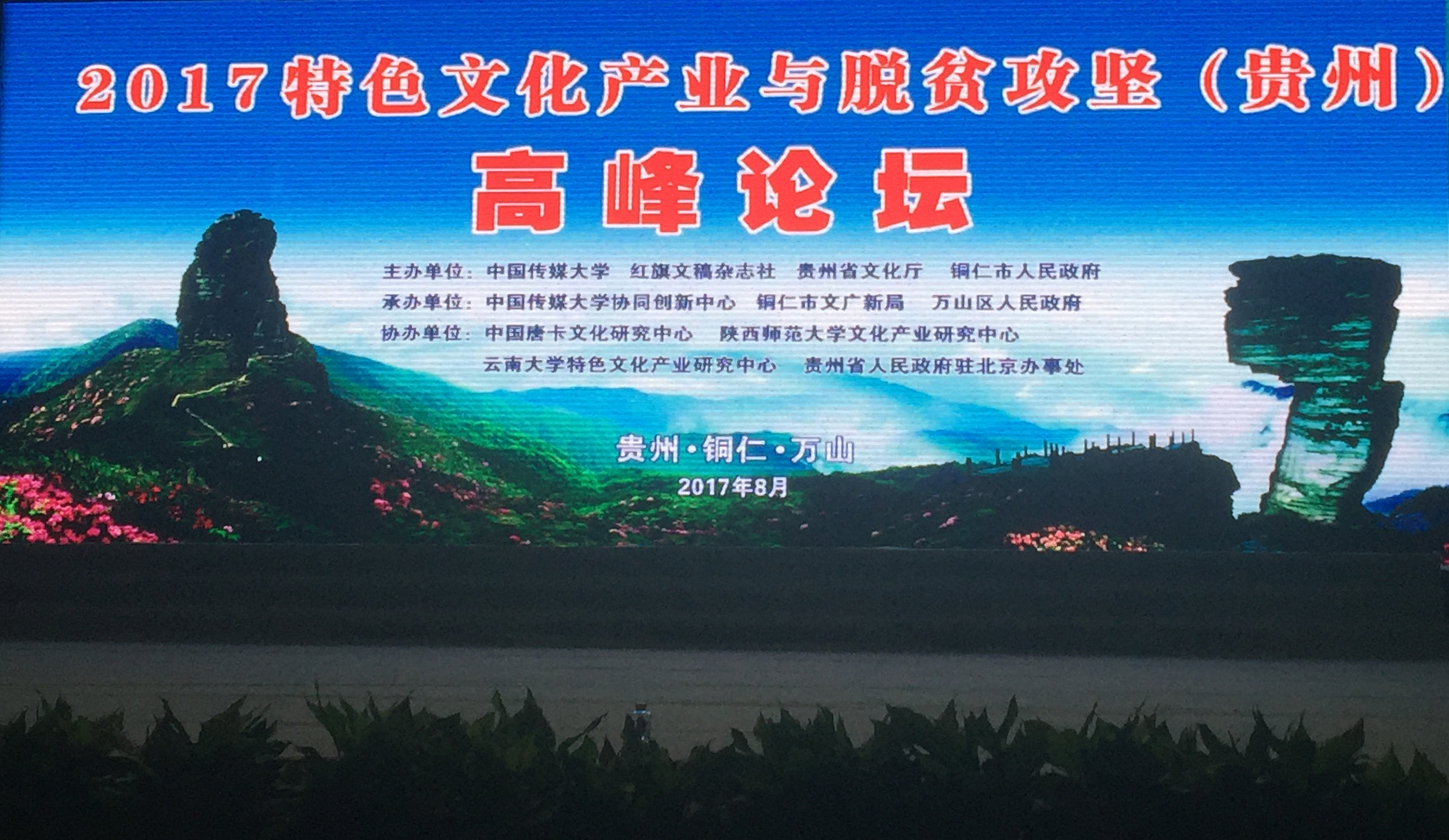 该论坛由贵州省文化厅、铜仁市人民政府等单位主办,中国传媒大学协同创新中心、铜仁市文广新局及万山区人民政府承办。贵州省委书记、省长孙志刚对会议召开做了重要批示,贵州省副省长何力以及文化部、国务院扶贫办等相关部门的领导出席开幕式,来自全国各地的150多位文化产业领域的专家、学者、企业家、青年人才参加了会议。