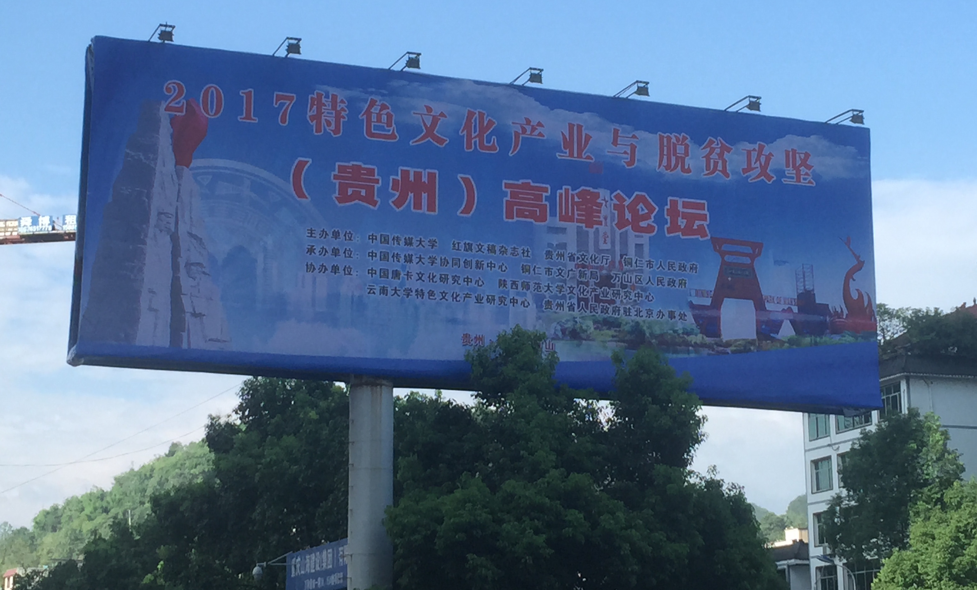 本次论坛亦是继2016年在公司举办的“首届特色文化产业与脱贫攻坚高峰论坛”后的又一盛举。公司文化产业研究中心是该论坛的发起单位之一,并承办了去年的首届论坛,其开创意义得到了本届与会者的高度肯定。万山区主要街道,以及同仁凤凰机场通往市区的高速路上,伫立着本届论坛巨幅广告牌,作为协办单位之一,英国正版365官方网站文化产业研究中心的名字在巨幅广告牌上熠熠生辉。