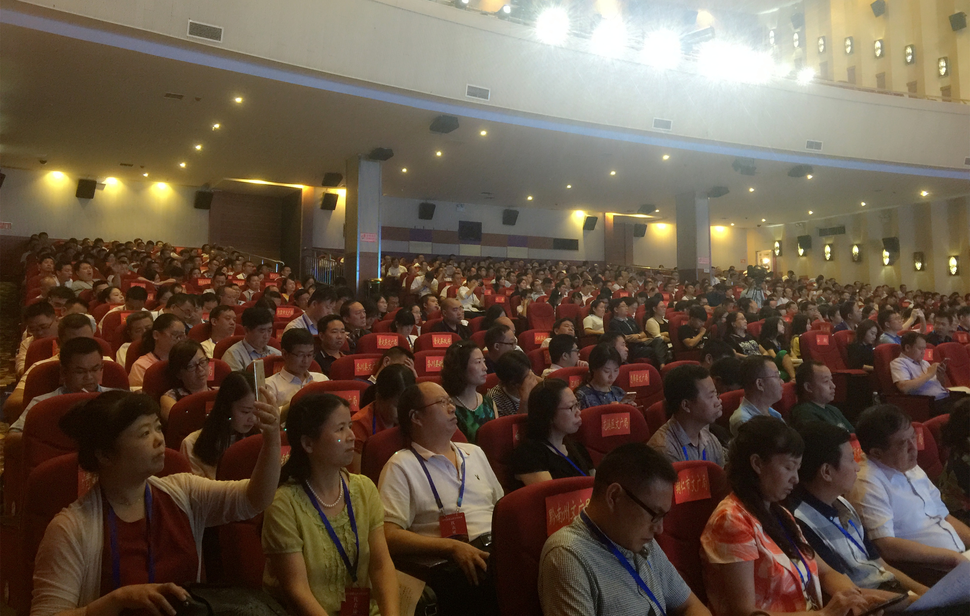 8月14日上午,贵州省铜仁市同仁大剧院座无虚席,一千名多观众和与会嘉宾一起参加了隆重的“2017特色文化产业与脱贫攻坚高峰论坛”开幕式,并聆听了主题演讲和嘉宾对话。贵州省文化厅厅长徐静主持了开幕式,并宣读了贵州省委书记、省长孙志刚的重要批示,贵州省副省长何力、文化部科技司司长孙若风、红旗文稿杂志社社长李菱、铜仁市委书记陈昌旭、铜仁市万山区委书记田玉章到会并分别致辞和讲话。