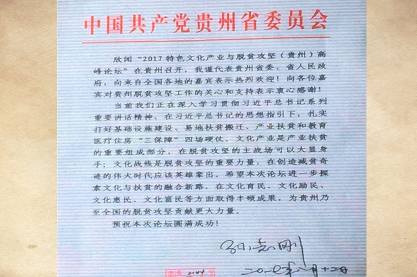 图二:贵州省委书记、省长孙志刚给本次论坛的重要批示