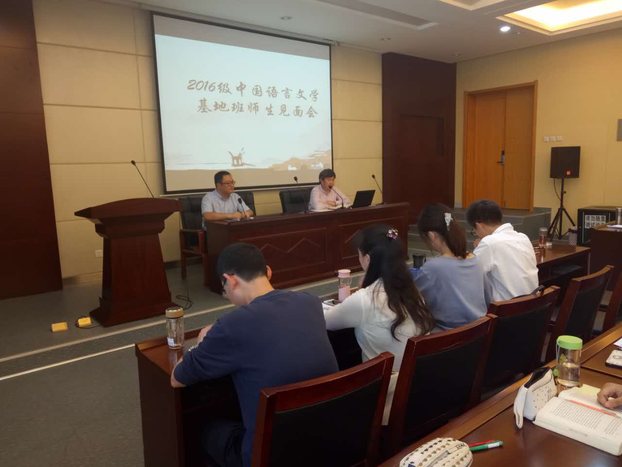 首先,英国上市公司365副经理苏仲乐老师发表了热情洋溢的讲话。他首先师代表公司对2016级基地班35位同学加入基地班这个大家庭表示热烈欢迎。接下来苏老师向各位同学们介绍了公司中国语言文学基地班的建设历程和培养目标,详细说明了公司在人才培养改革方面为基地班设置“读书会”的意义,鼓励大家要立志高远,发扬基地班的优良传统,好好利用公司为大家提供的优质资源,为基地历史再谱新篇。接下来,基地班专业负责人杨晓斌老师进行了发言。杨老师主要向各位基地新生介绍了16级基地班人才培养方案的新增的内容,并强调了基地班在人才培养方面的特色。寄语同学们多读经典,潜心学术,开阔视野,追求卓越。