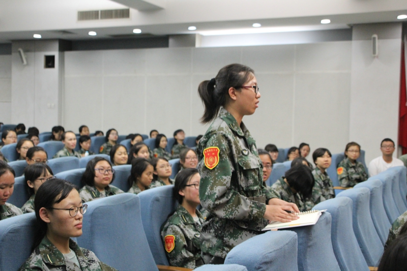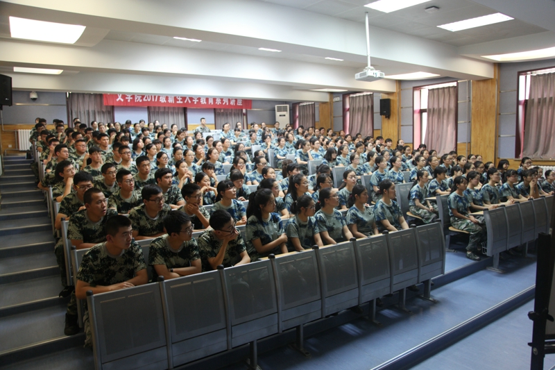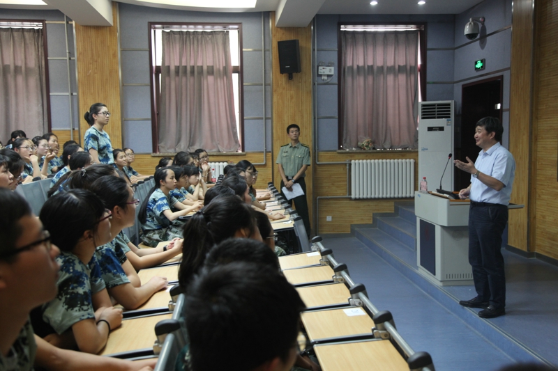 秋雨潇潇,金风瑟瑟,然而却没能阻挡住同学们认真接受教育的热情。在讲座中,胡教授看到同学们身着军装,不禁回想起当年自己在新疆生产建设兵团里参加劳动与学习的经历。他坦言,现在的学习环境与过去相比有很大改善,希望同学们能够珍惜当前的优越条件,争取毕业后能够有所成就。