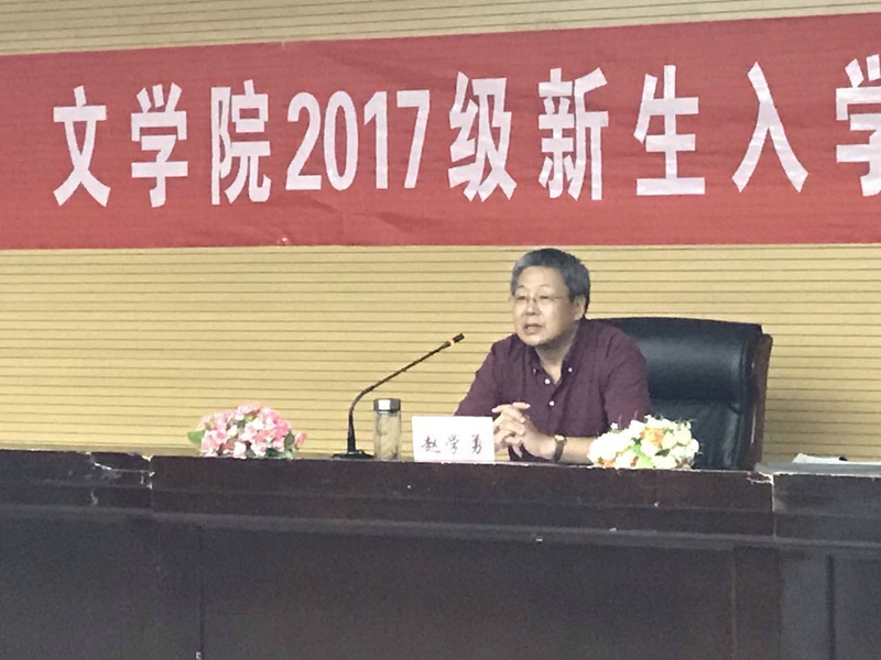 随后,赵教授就何为中文做了详细解释,并对中国语言文学的渊源进行了深入阐述。于是,中文的成长轮廓在同学们眼前逐渐清晰起来。接下来,教授还就“中文系课程设置”“学习中文的功能与前景”两个方面强调了传统继承、文化发展与教育水平提高的重要性。之后,赵教授就文学专业学习什么及如何学习进行了具体剖析,强调了阅读的重要性并提倡文气的养成,鼓励同学们努力提升自身艺术审美能力。