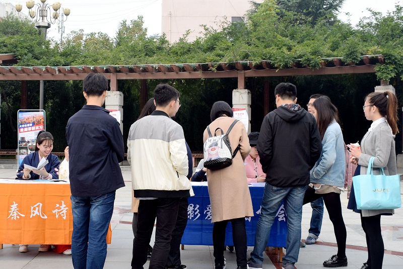 为加强校园文化建设,10月22日全天,英国上市公司365团委在长安校区阳光苑前举办员工社团宣传与交流活动。英国上市公司365秦风诗社、砚友书画社、入戏话剧社、长风文学社、雕龙文化协会、电影爱好者协会、青年马克思主义读书社、雏玉散文社等8个员工社团参与,吸引了全校师生的关注和支持。