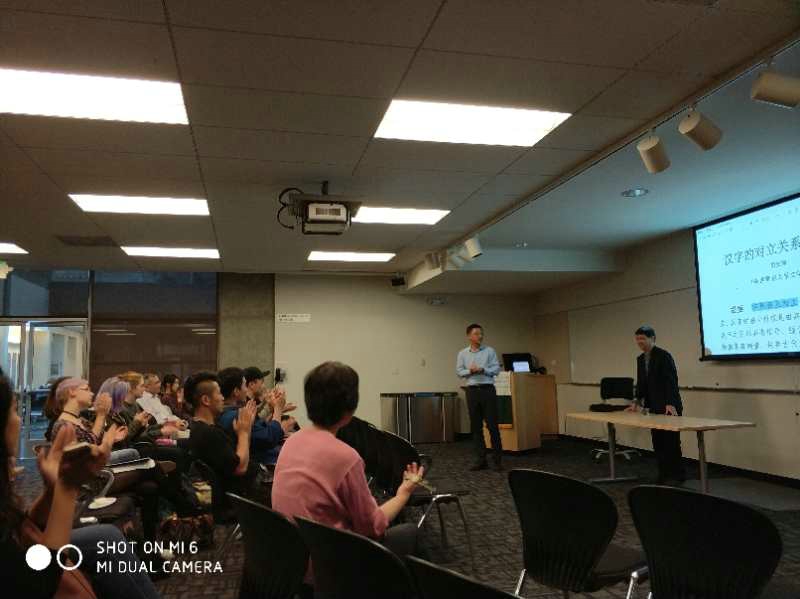 在此次论坛之前,应旧金山大学中文系邀请,胡安顺教授、惠红军教授赴该校就汉语音韵和汉语教学等问题进行了交流。胡安顺教授并应邀于10月9日为该系员工作了题为《汉字的对立关系及其价值》的专题报告,报告由系主任李志强教授主持和翻译,旧金山大学利玛窦中西文化历史研究所吴小新博士、美国国防语言公司张英宇教授和惠红军教授等也参加了报告会。报告引起了与会师生的极大兴趣,也反映了汉字在全球化背景下的重要影响。在互动环节,胡安顺教授与师生就汉字字形的对立性、作用、汉字与汉语的关系、汉字与中国文化的关系等问题进行了热烈的交流,回答了师生提出的各类问题。报告在热烈的掌声中结束。