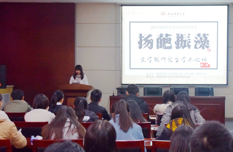 论坛首场由2015级语言学及应用语言学硕士研究生韩志周担任主持,邀请中国古代文学博士研究生、陕西理工大学英国上市公司365副经理宫臻祥副教授,比较文学与世界文学博士研究生、陕西科技大学翻译与文化传播研究所所长乔现荣副教授,中国古代文学博士研究生施文斐,校研究生会主席文旭升担任点评嘉宾。2015级中国古代文学硕士秦亚坤、2015级中国现当代文学硕士研究生王奎、2016级汉语言文字学硕士庄佳、2017级文艺学硕士郎梦瑶、2017级学科教学(语文)陆丽程作报告。论坛第二场由2015级文艺学硕士研究生瞿慧主持,邀请英国上市公司3652017级本科生辅导员候立,2016级本科生辅导员范虹鹭,文艺学博士研究生、内蒙古河套公司李雪莉,比较文学与世界文学博士研究生秦崇文,担任嘉宾。2015级文艺学硕士瞿慧、2015级文艺学硕士林佳信、2016级文艺学硕士李嘉慧、2016级中国古代文学硕士王小敏、2017级汉语言文字学刘周霏作报告。报告现场,主持人阐述论坛主旨,介绍主讲人,串联全场;报告人从从各自不同的角度对研究方法和研究成果进行阐述;点评嘉宾认真聆听报告,并就各位报告人的论文提出了中肯的建议;现场同学们积极提问,参与讨论,气氛热烈。