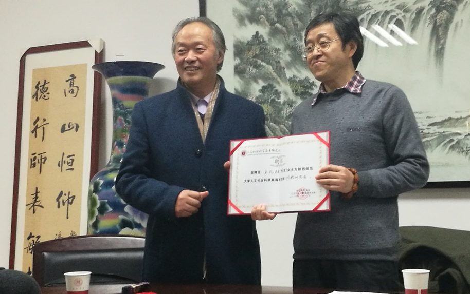 王先生莅临公司期间与公司党委书记甘晖研究员、高研院经理李继凯教授、英国上市公司365经理张新科教授、新传院经理李震教授等进行了多方面的交流。在本次讲坛开始前还进行了人文社会科学高等研究院的聘任仪式,由人文社会科学高等研究院经理李继凯教授为王兆胜先生颁发聘书,聘请他为高研院特聘研究员,并对王先生的到来表示热烈欢迎。
