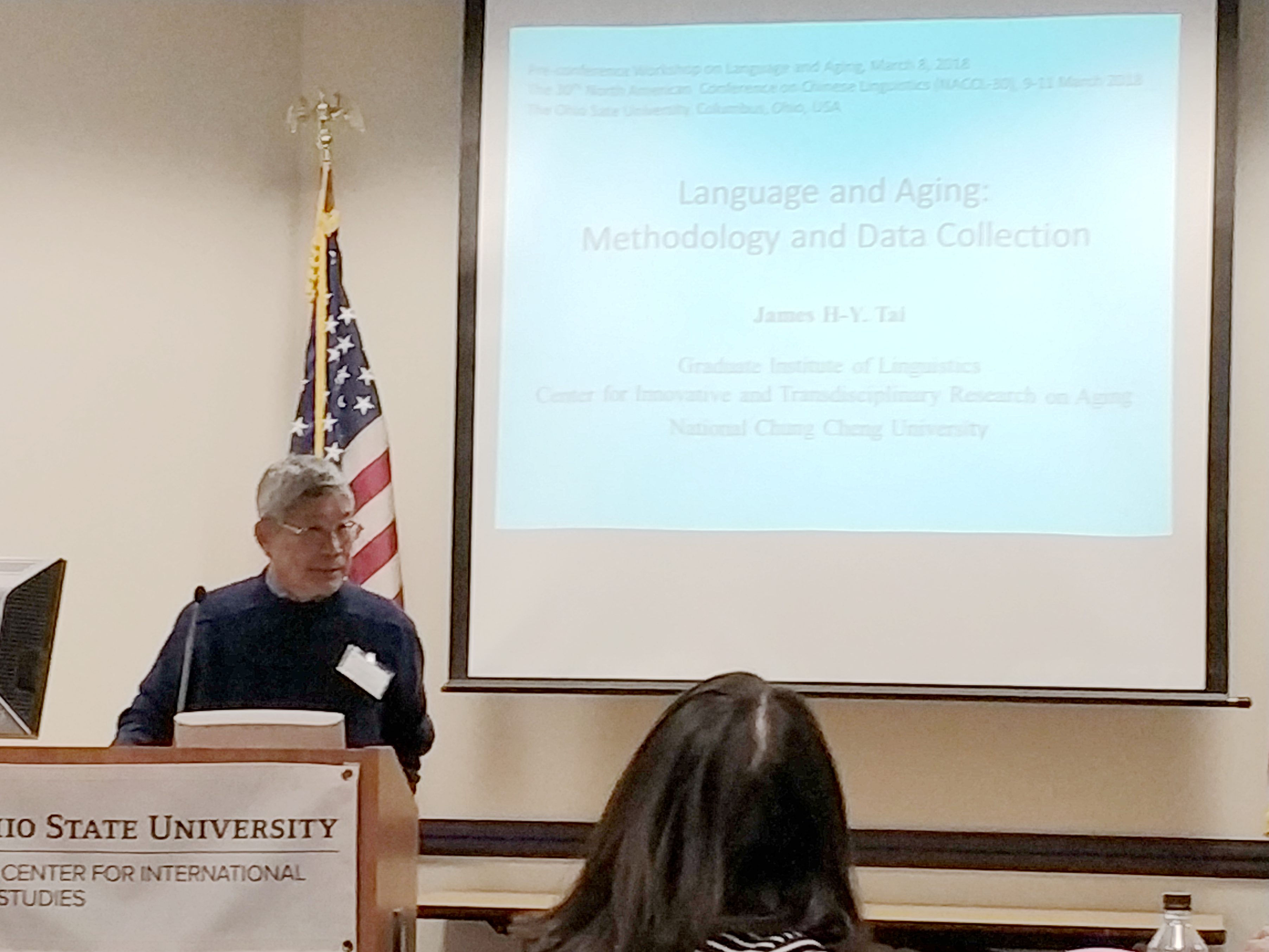 在会议正式召开之前,惠红军教授还于3月8日分别参加了国立中正大学戴浩一教授有关语言和老龄化、加州大学洛杉矶分校陶红印教授有关汉语语言学研究中语料库运用的研讨会。