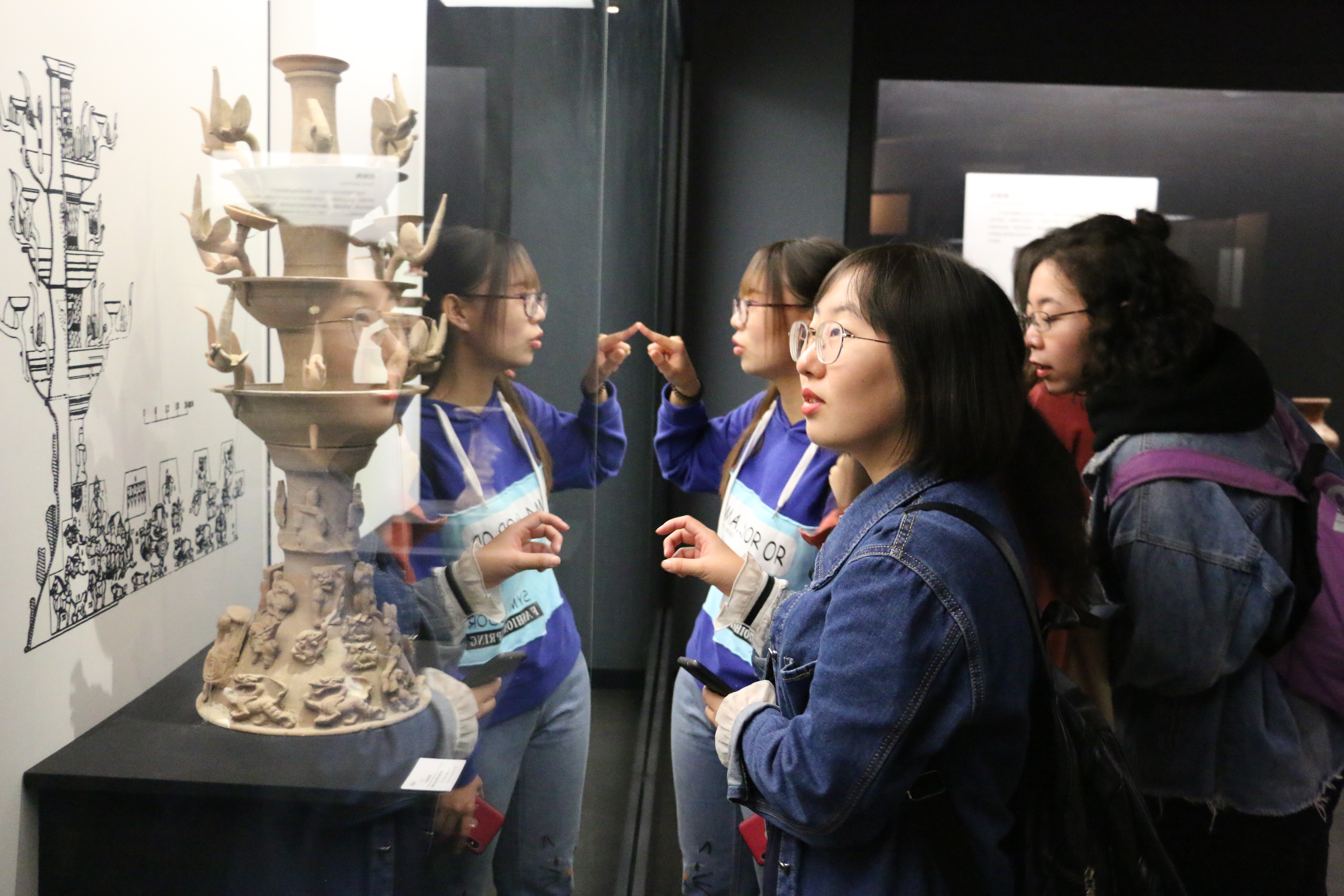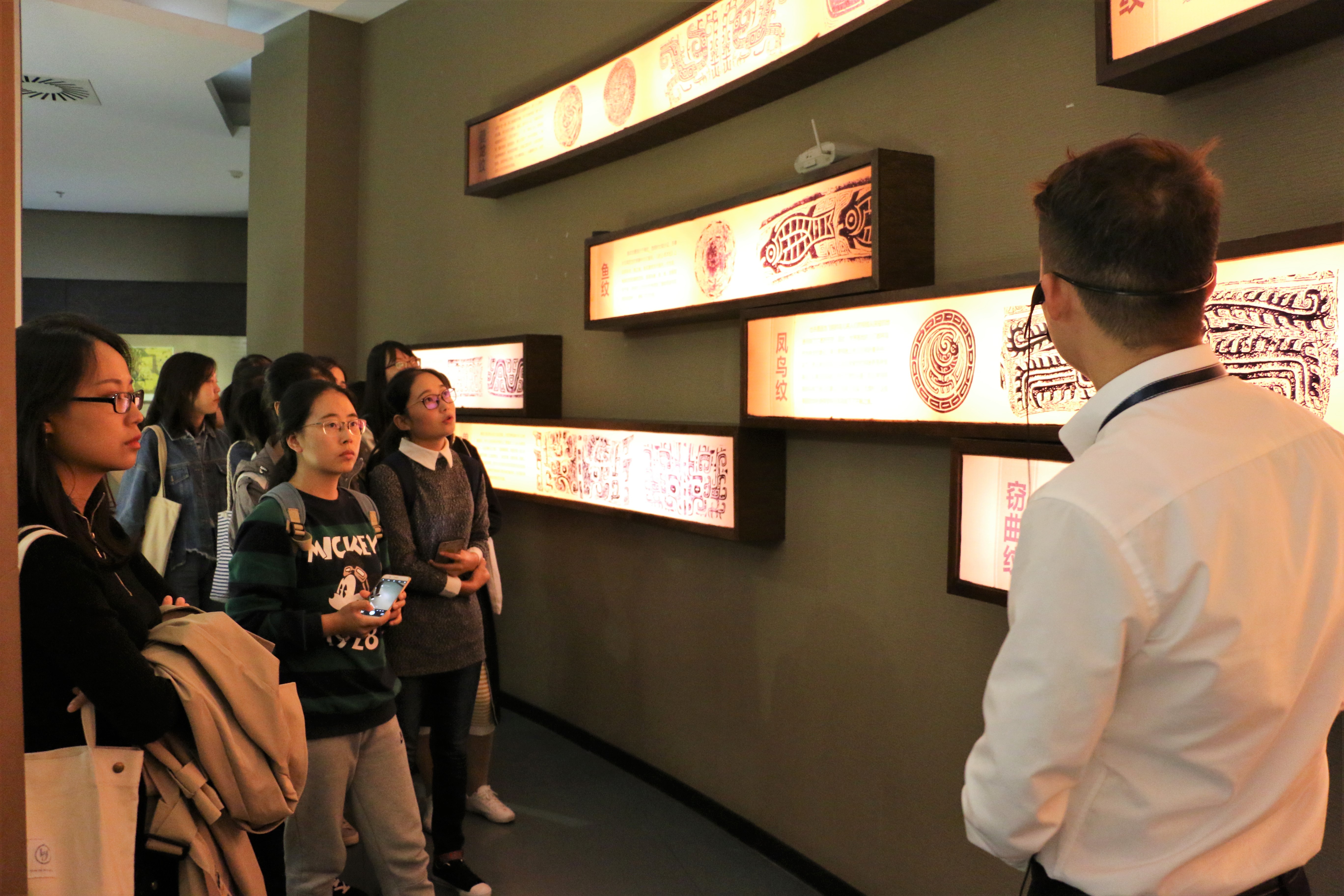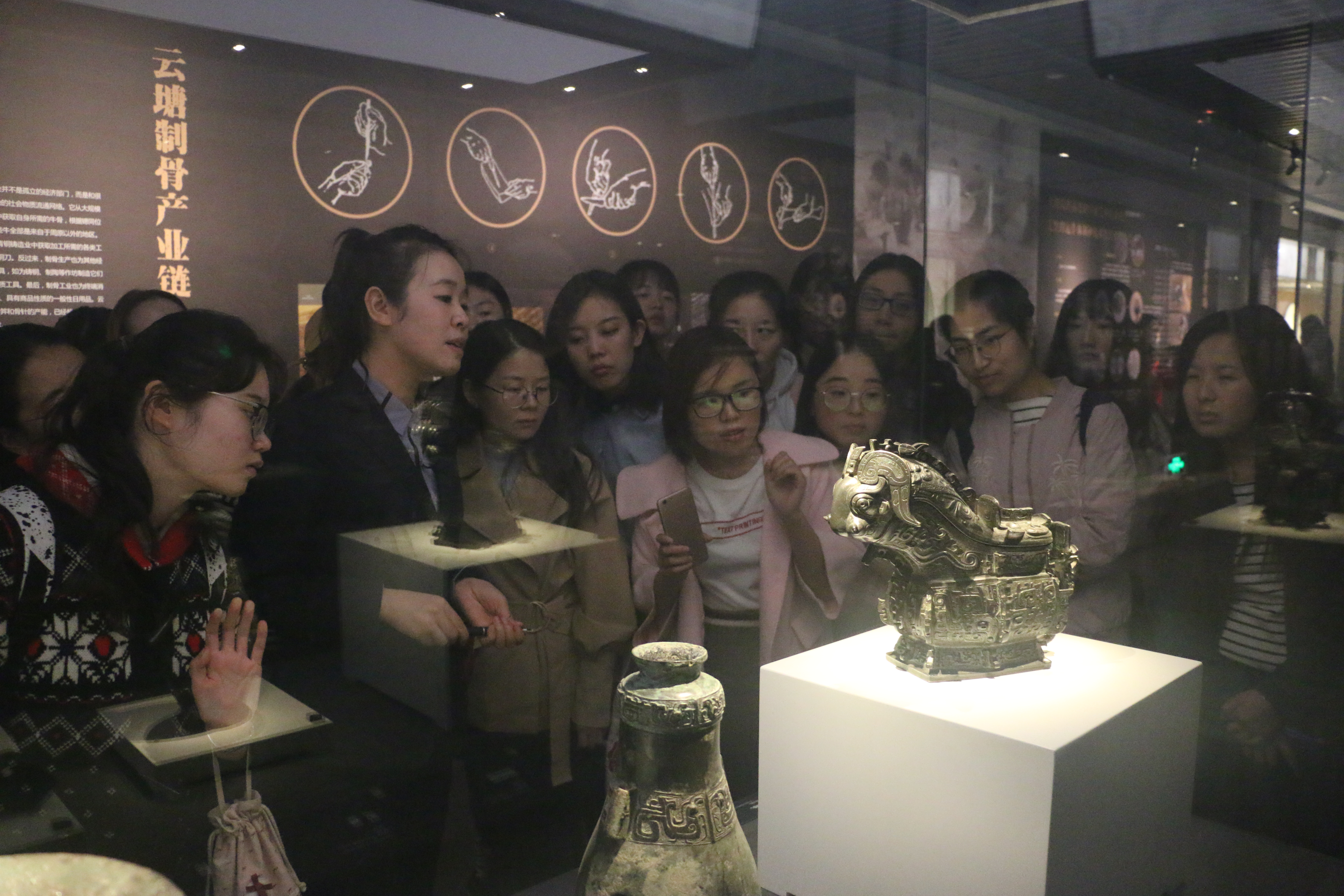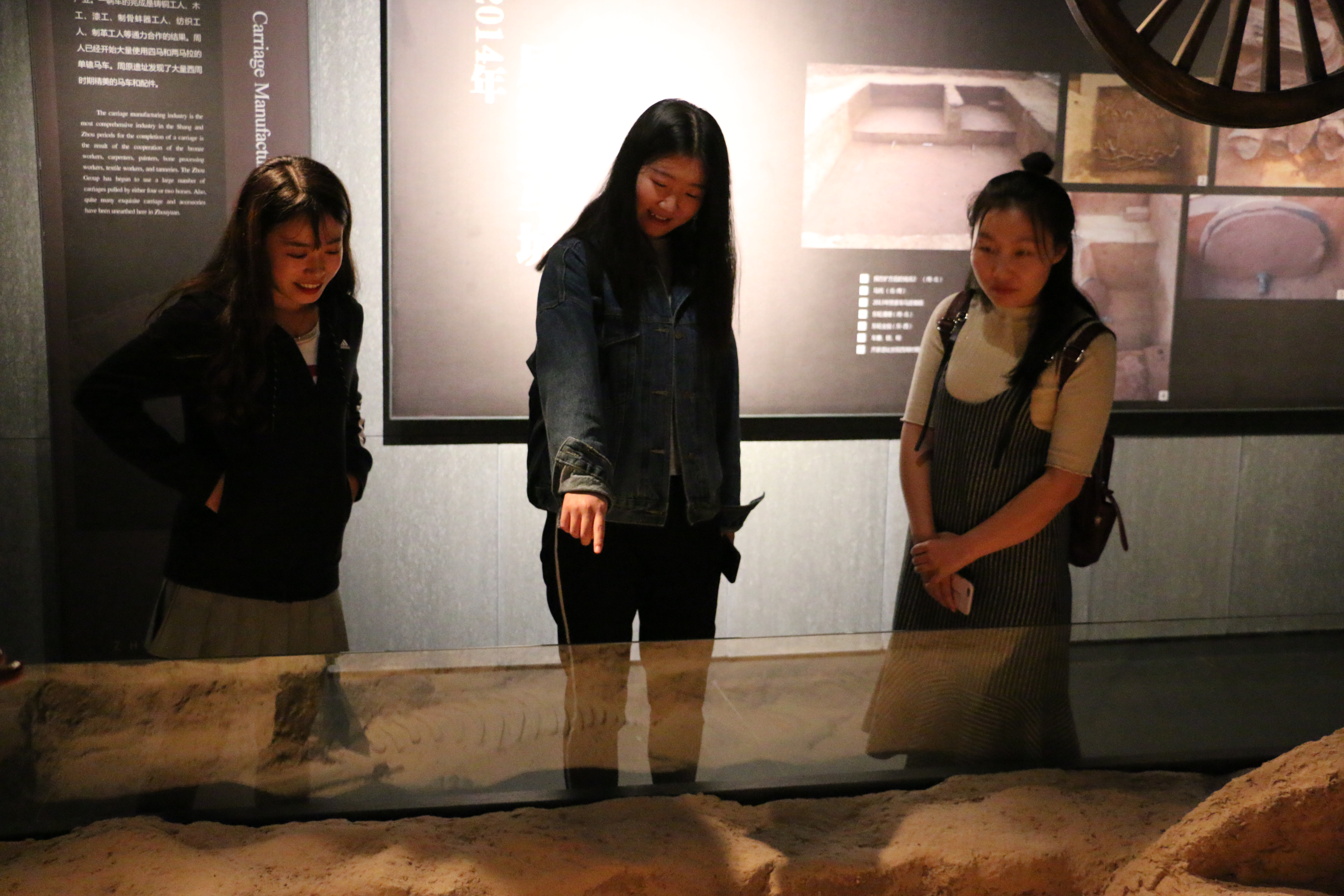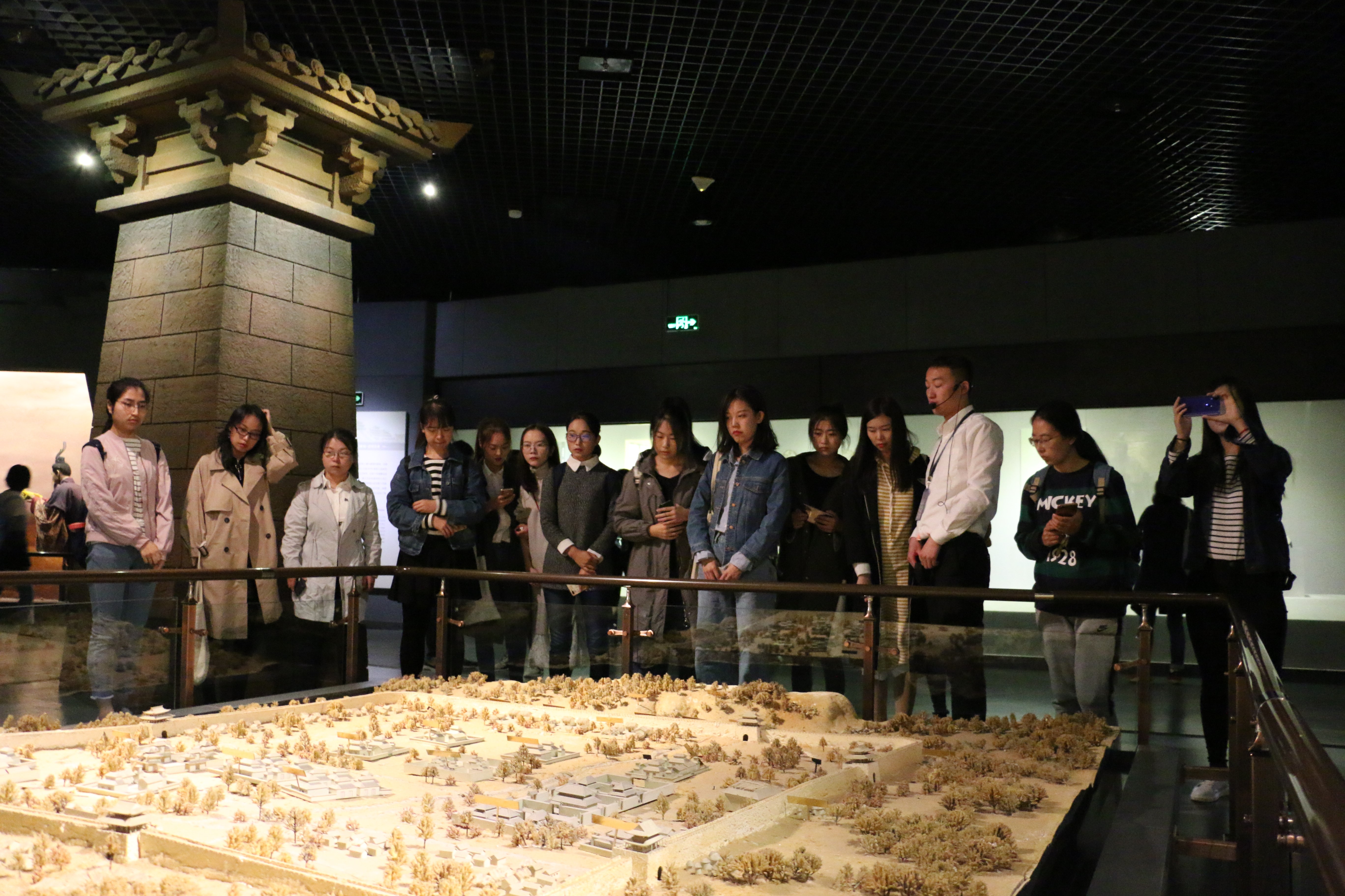 上午10时,师生到达本次文化考察的第一个目的地——中国青铜器博物馆,暨宝鸡青铜器博物院。中国青铜器博物馆新馆位于宝鸡市滨河南路石鼓山上,是中国最大的青铜器博物馆。新馆馆舍用青铜器出土的场景作为建筑造型,建筑面积3.48万平方米,馆藏文物12000余件(组),其中一级文物120余件。在讲解员的带领下,大家依次参观了“青铜器之乡”、“周礼之邦”、“帝国之路”和“智慧之光”四个主题展厅。在“青铜器之乡”展厅,展览从出土文物的数量之多、历史之久和铭文之精三个方面,全面阐释了宝鸡“青铜器之乡”美誉的由来;“周礼之邦”展厅主要以对周礼的追溯和阐释为线索,通过对文物信息的阐述,描绘出了一幅兴于周朝礼制下的辉煌盛世;“帝国之路”展厅以周王室的衰败和东迁为背景,呈现了秦帝国的崛起之路,让同学们在真实的历史遗存中感受到周秦兴衰变迁;“智慧之光”展厅以复原西周青铜作坊的形式,诠释了青铜器从制模翻范到铸造成器的完整工艺,师生纷纷对古人的智慧赞不绝口。随后,老师和同学们还参观了“陶语诉春秋”、“对镜贴花黄”等主题展厅,带着满满的收获前往岐山。