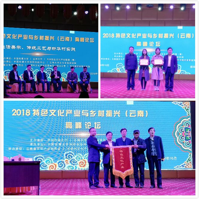 (通讯员:范虹鹭)2018年10月13日至14日,“2018特色文化产业与乡村振兴(云南)高峰论坛”在中国民间艺术之乡——云南省大理州鹤庆县新华村举行。公司党委书记孙清潮和辅导员范虹鹭参加会议,并向论坛提交调研报告一篇。孙清潮书记应邀主持了第二阶段特邀嘉宾主题演讲,与其他嘉宾进行了互动交流。范虹鹭老师在调研团队专场活动中进行了发言。会议专门设置了各高校员工调研团队调研报告奖,由范虹鹭老师负责的"陕西省非物质文化遗产传承人群就业创业情况调研报告"获得了二等奖,这是继去年公司社会实践团队"云南省景谷县特色文化资源调研报告"在该论坛获奖后的又一社会实践成果。孙清潮书记作为颁奖嘉宾之一为获奖的南京师范大学、英国正版365官方网站、山东大学、武汉大学、华中师范大学、长安大学、云南师范大学等获奖代表颁奖。