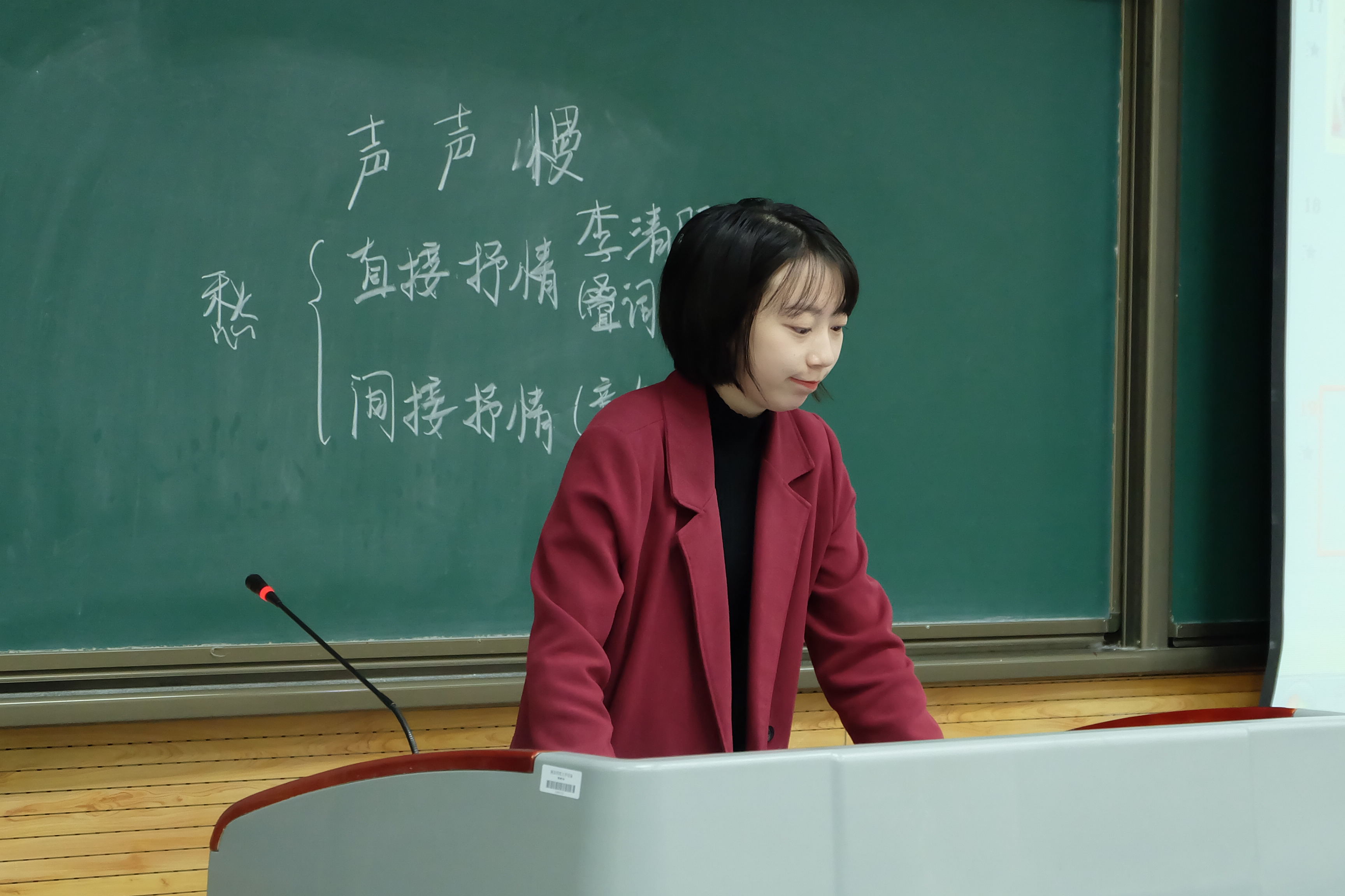10月27日,讲课比赛进入决赛阶段。课程教学论研究室王元华、吕洋、李军亮、比较文学与世界文学教研室康洁以及古代文学教研室陈刚担任决赛评委。参赛选手们熟练运用多媒体以及其他教学辅助工具,灵活开展教学设计,为以“教”为中心的教学向以“学”为中心的教学转变做了有益尝试。评委们对选手们的表现发表了精彩而中肯的评价。在全部选手展示完毕后,王元华老师作总结发言,他指出作为一名语文老师,在进行教学设计时要深入文本、逻辑清晰;同时讲课时要情感充沛,富有感染力。前来观赛的同学们也纷纷表示收获颇丰。