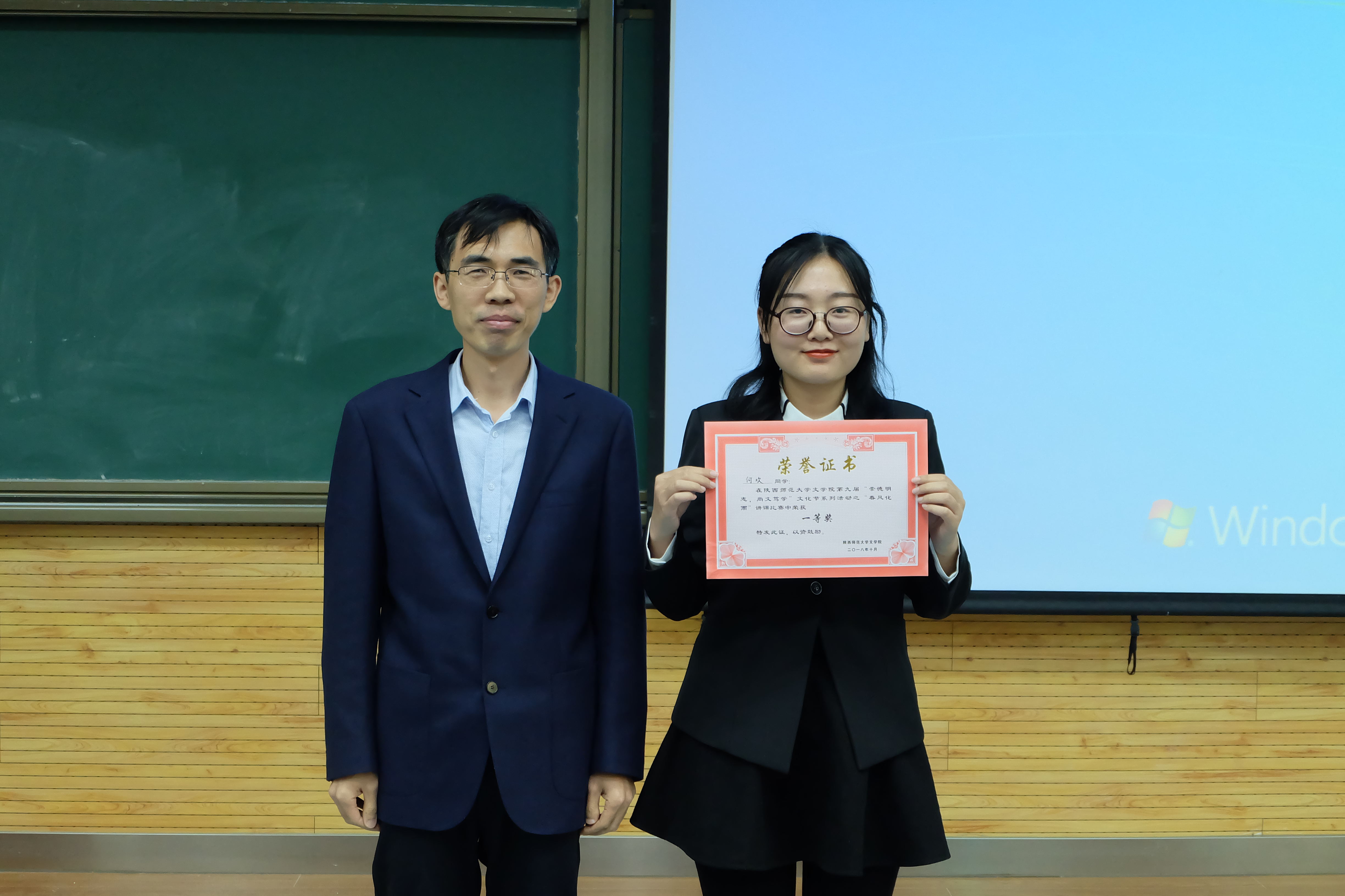 经过分数汇总核算,最终评出一等奖获得者李媛、何欢,二等奖获得者张鹏、杨国荣、王晶、任桐炜,三等奖获得者李梓扬、郭惠、张小娜、汪燕、余小翠、闫淑琴。老师们分别为获奖同学颁奖。最后,全体参赛选手与评委老师们合影留念。