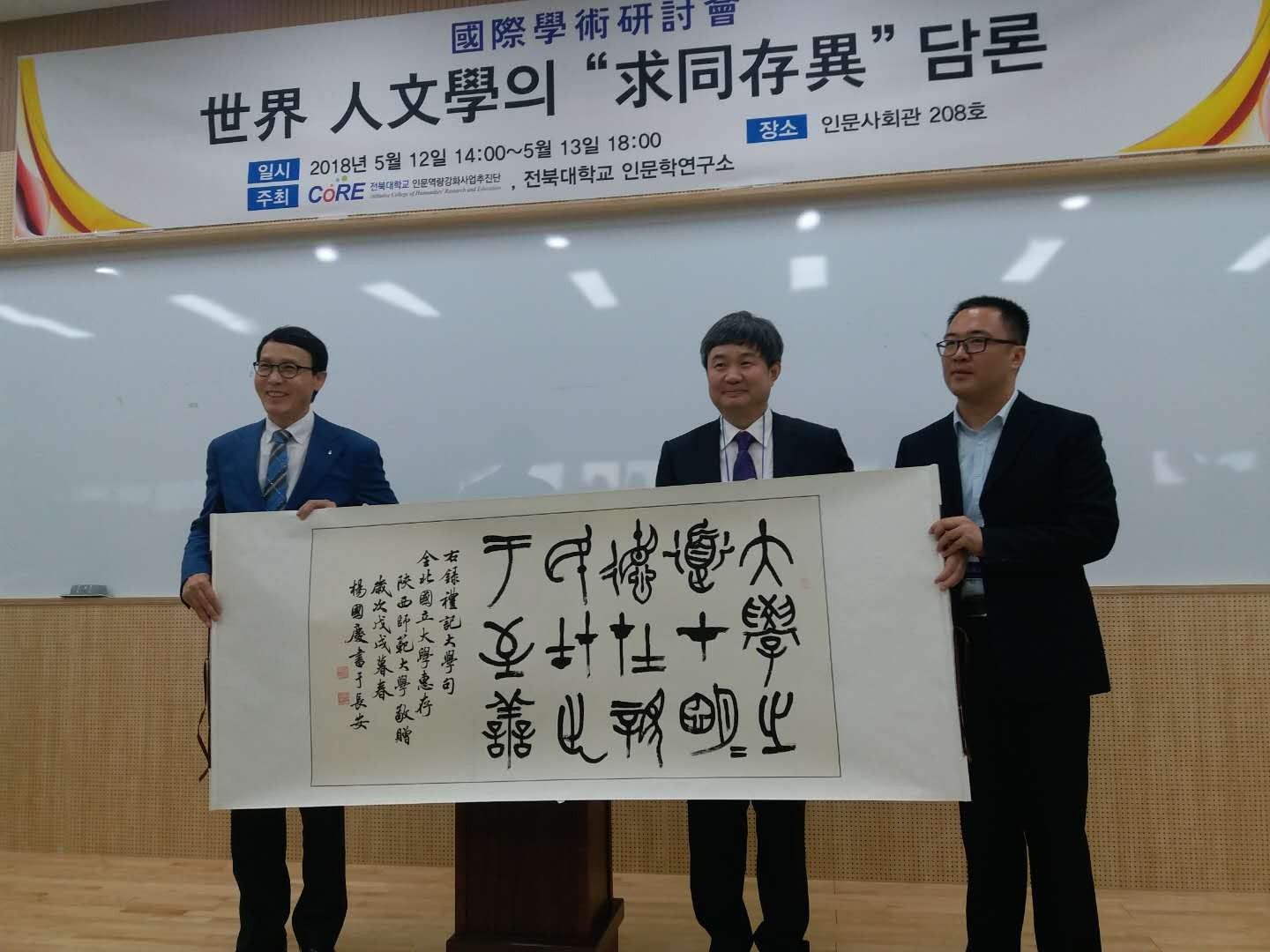 (通讯员:王伟)为进一步提升公司团队建设与学术研究的国际化水准,促进一流团队建设的深入发展,2018年5月11日至15日,公司苏仲乐、杨晓斌、王伟(古代文学)、周广干、王怀中、杨国庆等六位教师应邀前往韩国国立全北大学,参加由该校人英国上市公司365主办的“世界人文学‘求同存异’国际学术研讨会”。会议期间,苏仲乐教授代表英国上市公司365向全北大学人英国上市公司365赠送了书法作品,并受邀担任大会第三分科的主持人,六位老师按学科类别参与了各自小组的讨论,交流气氛热烈,相关成果引起会议代表的好评。