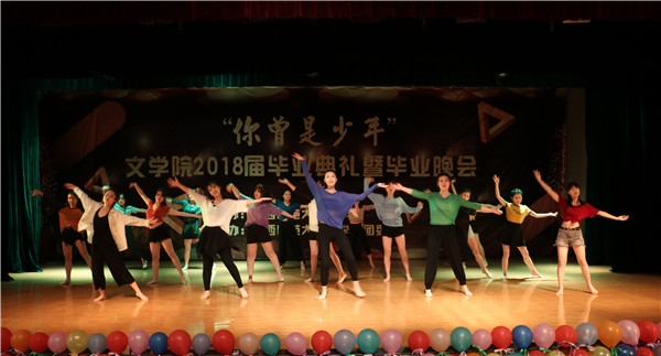 学工组的老师和员工会的同学为大家送上惊喜。歌曲串烧《光阴的故事》让现场观众感动不已;研究生秦亚坤带来的戏曲表演《玉簪记》充分展现出中华优秀传统文化的魅力;员工会文艺部同学的舞蹈《pick me》将现场气氛推向高潮;伴着歌曲串烧《最后一次晚点名》,第三篇章的表演结束,本次毕业晚会也接近尾声。