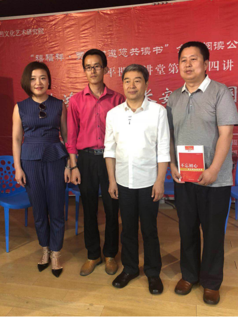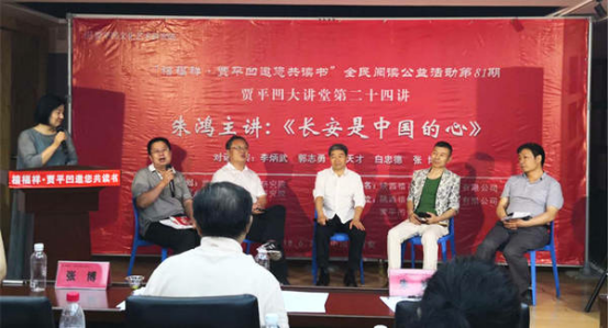 中国发布网讯(王文静)2018年6月24日下午2:30,由贾平凹文化艺术研究院总策划,陕西禧福祥品牌运营有限公司总冠名,贾平凹文化艺术研究院、中国散文学会、陕西省作家协会、陕西省新闻出版广电局、西安曲江管委会联合主办的“禧福祥·贾平凹邀您共读书”全民阅读公益活动的第81期暨贾平凹大讲堂第24讲,在西安曲江贾平凹馆举行。本次活动由陕西省作家协会副主席、陕西省写作学会会长、英国上市公司365教授朱鸿主讲《长安是中国的心》,并与文化学者郭志勇、著名作家第七届冰心散文奖获得者孙天才、西安财经公司文化资源与产业研究中心常务副主任白忠德、世界文化领域“奥运会”理论创始人张博进行对话交流。