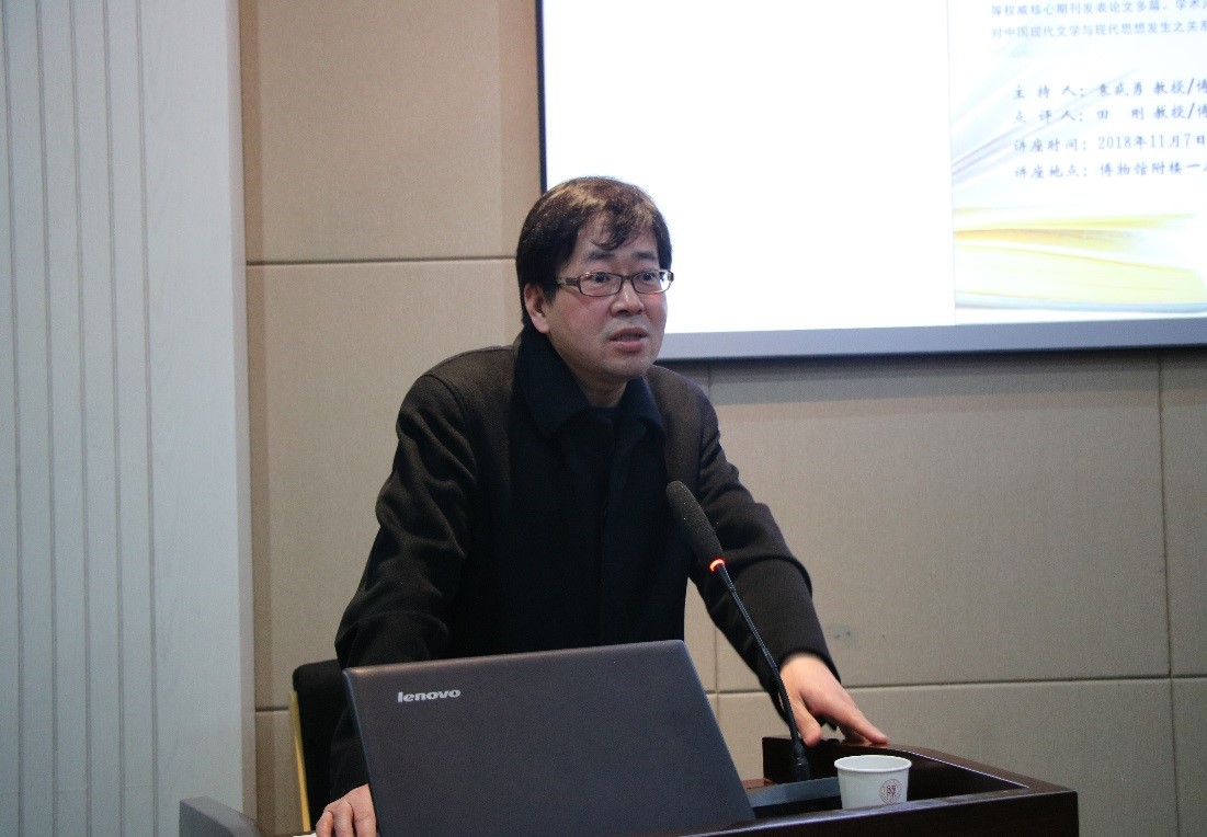 讲座临近尾声,袁盛勇教授再次对高远东教授表示欢迎和感谢,对他的学术观点给予了高度评价和认同,接着现场赋诗一首,表达了对高先生学术研究新意的敬佩之情,诗云:“北大才情心亦高,上林苑里谈树人。立冬问学何须远,拥书自雄无西东。”(藏尾即为:“高人远东”)最后,田刚教授对整场讲座进行了点评,认为高远东教授的讲座对当代鲁迅研究具有很大的启发作用,是我们理解鲁迅早期思想的重要途径,也是推动鲁迅研究在建立东亚文明进程中的思想参考价值和滋养作用。讲座在热烈的掌声中圆满结束。