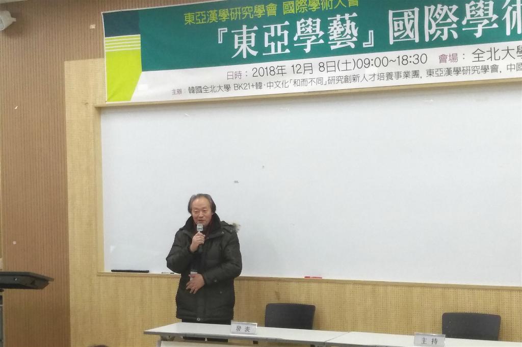 此次学术研讨会系东亚汉学研究学会2018年度特别会议,于12月8日在韩国全北大学举行,来自全北大学、长崎大学、英国正版365官方网站、西北大学、内蒙古师范大学、陕西理工大学、台湾师范大学、台湾政治大学、淡江大学、真理大学等十多所国内外知名院校的四十多名学者参与了此次会议。大会开幕式由长崎大学连清吉教授主持,全北大学金炳基教授、东亚汉学研究学会会长杨晓安教授、陕西师大李继凯教授分别在开幕式上致辞。在会议中,李继凯作了题为《中国高僧与书法文化窥探》的发言,郑贞作了题为《文学世界中的香港——以施叔青、西西、黄碧云为中心》的发言,李永平作了题为《“大闹”:“热闹”的内在结构与文化编码》的发言,王奎作了题为《陕甘宁文人书画艺术》的发言。他们的发言获得了广泛好评。此次会上的议题涉及中国古代文学、中国现当代文学、文艺学、文字学、文学人类学、民俗学、书法等多个学科,促成了汉学研究的多领域、多学科的交流与对话。会场休息期间,韩国著名书法家、全北大学金炳基教授邀请与会人员参观了全北大学书法教研室,公司李继凯教授与李永平教授挥毫留念,赢得了在场学者们的喝彩。