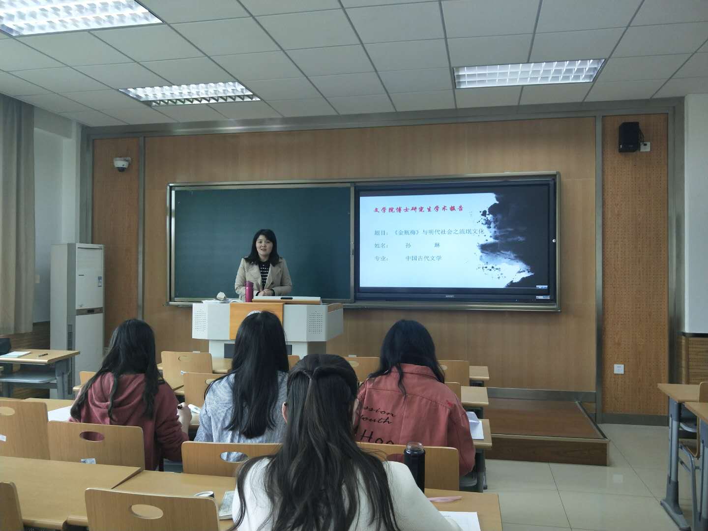 第68场博士学术报告以《<金瓶梅>与明代社会之流氓文化》为题,由中国古代文学专业博士研究生孙琳主讲。孙琳从西门庆其人、《金瓶梅》中流氓文化之表现、明代社会之流氓文化三个方面展开报告。她先对“流氓文化”的概念进行解读,以小见大,揭示明代社会的流氓文化存在状态及其原因。她认为流氓文化对社会文化有腐蚀作用,且会像不可遏制的潮流一般,向整个社会蔓延,而这一切最根本的原因在于明代的专制统治制度。