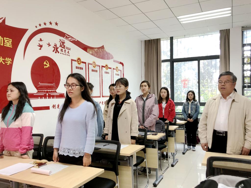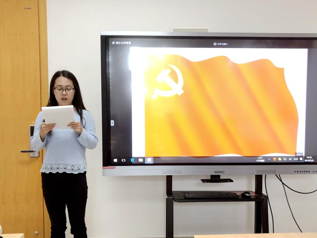 会议在庄严肃穆的国际歌中拉开序幕,进行支部预备党员转正程序。申请转正的预备党员宣读入党申请书,满怀真情地表达了对党的忠诚与向往。支部正式党员进行讨论并充分发表各自意见,在申请人再次表明态度后拥有表决权的党员对预备党员进行投票表决,最终申请同志通过了转正申请。