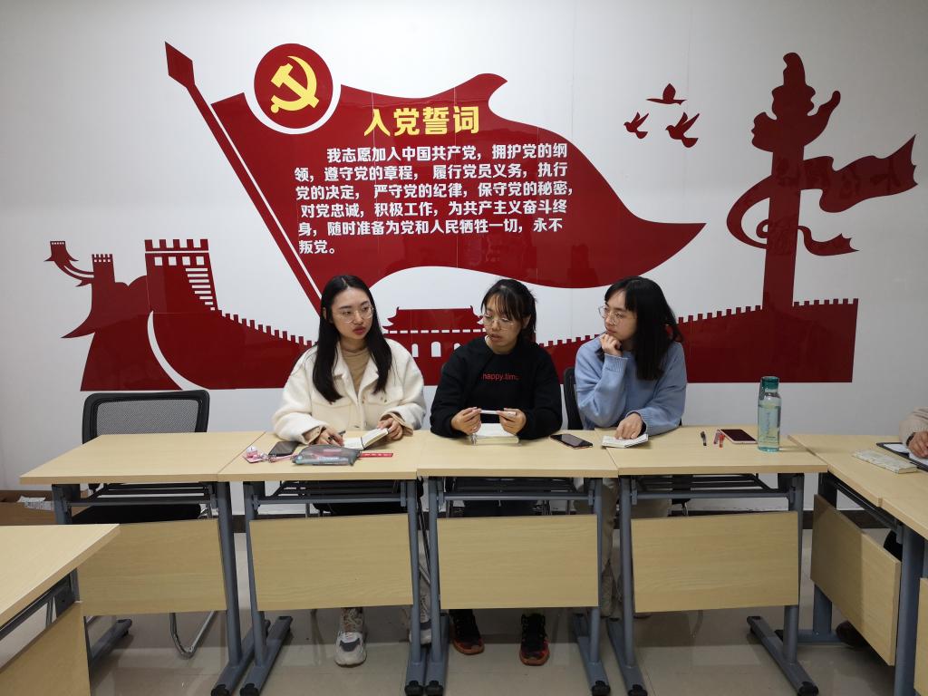 各小组代表发言完毕,马佩仪号召大家结合自身经历进行自由讨论,谈谈自己的想法或者存在的困惑。在此环节中,李尚静同学对榜样人物李萌的工作选择表示疑惑,马佩仪结合榜样张富清和李连成的优秀事迹给予解答,认为我们身为党员,应该敢于牺牲小我实现大我,相信付出与收获永远成正比,不惧怕吃苦和吃亏。沈云霞同学也据此谈到“价值”本身是一个抽象的概念,但实现价值需要具体地实践。张溢越同学则由村支部书记李连成想到国庆献礼片《我和我的祖国之白昼流星》中给全村带来希望的村干部。张婷同学表示身为党员要有担当,并从职业规划出发,认为作为一名教师要给孩子传递正确的价值观。在大家分享的基础上,马佩仪又对支部成员们提出了殷切希望,希望大家以身作则,时刻不忘党员身份,团结同学,传递积极思想。