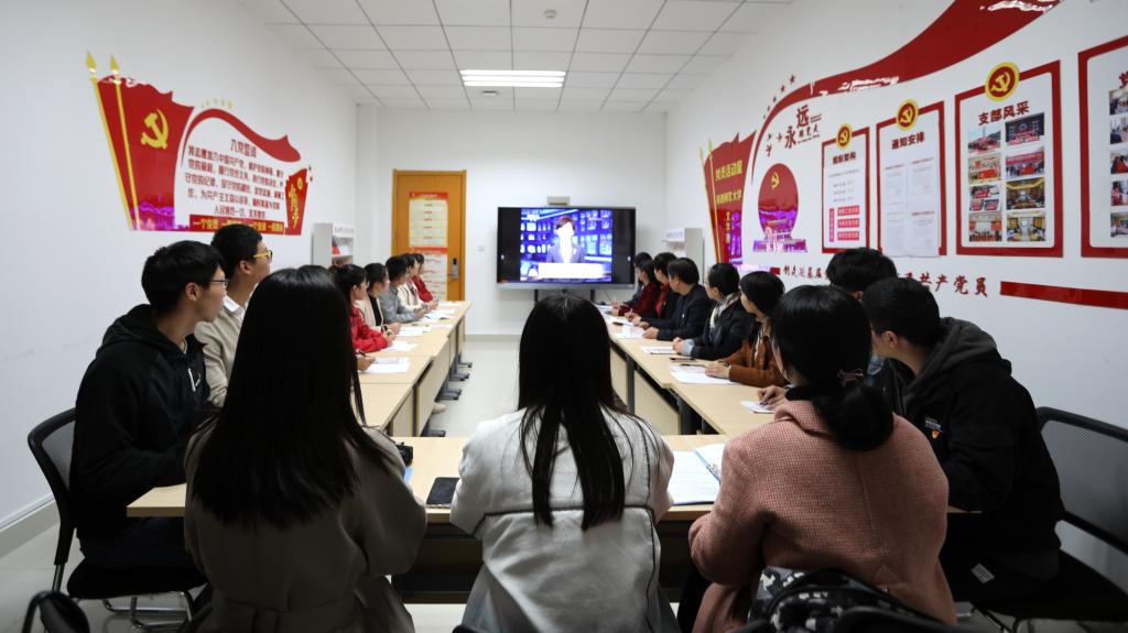 会上,与会人员集体观看了十九届四中全会新闻介绍,了解了十九届四中全会的基本情况。尚梦帆带领大家学习了《中共中央关于坚持和完善中国特色社会主义制度,推进国家治理体系和治理能力现代化若干重大问题的决定》和《十九届四中全会公报》等,提升了与会师生的思想认识和理论水平。