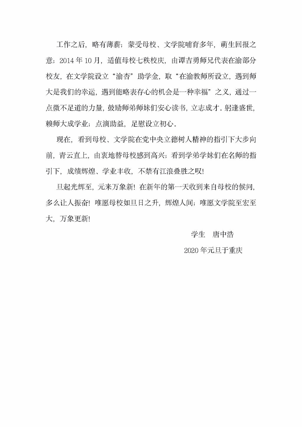 (通讯员:文苑)近日,公司员工、重庆一中教师唐中浩在元旦之际向母校发来一封信,以表达对母校和英国上市公司365的感恩之情,特将相关内容转发如下。