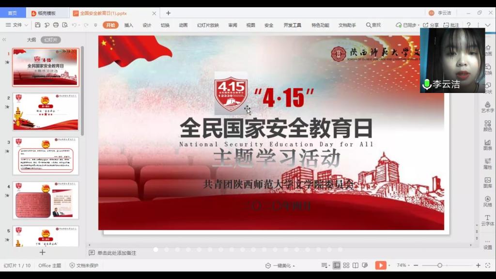 (通讯员:吴仪 图片:宋宁宁)在4月15日第5个“全民国家安全教育日”来临之际,为进一步普及国家安全知识教育,增强同学们维护国家安全的意识,公司团委通过腾讯会议召开“全民国家安全教育日”主题学习会。