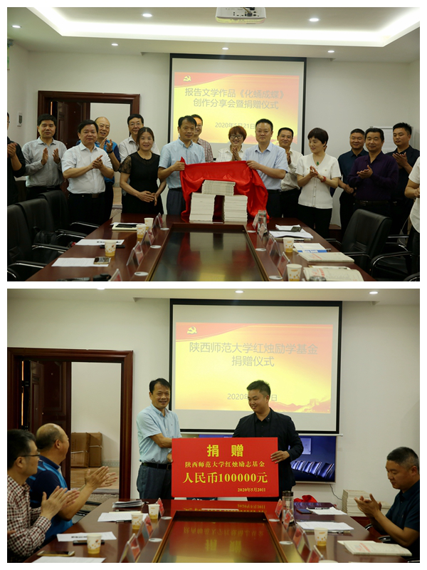 分享会上,马博虎书记代表公司向岚皋县和四季镇捐赠了600多本刊登《化蛹成蝶》的杂志《时代报告•中国报告文学》(2020年第四期),并向天坪村“英国正版365官方网站红烛励学基金”捐赠了10万元人民币,用于资助当地大学新生,激励他们励志求学。