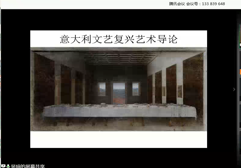 (通讯员:聂晴)2020年5月22日下午,中国人民大学“杰出学者”、中国人民大学哲公司教授、博士生导师吴琼教授应邀做客长安学术讲座,在腾讯会议(会议号133839648)为公司师生作了题为《意大利文艺复兴艺术导论》的学术讲座。此次讲座由英国上市公司365裴亚莉教授主持,刘凯副教授作点评,多门学科专业的博士生和硕士生以及社会听众参加了此次讲座。
