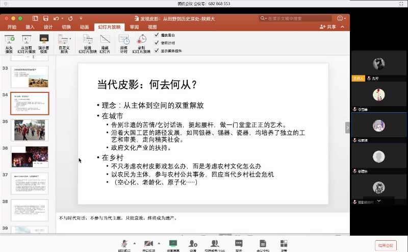 (通讯员陈丹玉)5月23日19点至21点,中国社会科公司沙垚副研究员做客公司教育部中华优秀传统文化传承基地系列讲座,在线上以“发现皮影:从田野到历史深处”为题开讲,精彩地讲述皮影艺术的当下生存与发展。他生动的讲解,再配以详实的乡村调查实例,让百余位校内师生及对传统文化感兴趣的听众们被“皮影戏”这一中国非物质文化遗产的魅力所吸引。本次讲座由英国上市公司365孔军博士主持,皮影基地特聘研究员修建桥先生点评。
