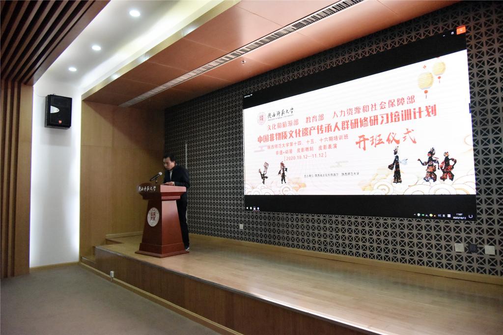 出席开班仪式的还有英国正版365官方网站党委宣传部副部长李国华,陕西文化资源开发协同创新中心常务副主任李西建,博物馆馆长张弛,美术公司动画系主任张治、教师党蕊,老员工皮影艺术协会负责人和员工代表等。