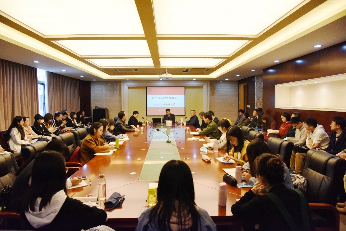 (通讯员:王楠)10月20日上午,北京外国语大学中英国上市公司365经理詹福瑞教授莅临公司讲学,主题为《李白诗文中的生命意识》。本次讲座由公司张新科经理主持,傅绍良教授担任点评人,北京外国语大学中英国上市公司365副经理方稚松,公司中国古代文学、中国古典文献学教研室教师刘锋焘、杨晓斌、王晓鹃三位教授及相关硕博士生参加了本次讲座。