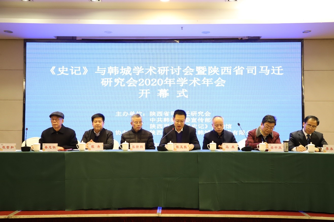 陈玉振代表韩城市对研讨会表示热烈祝贺,向陕西省司马迁研究会长期以来坚持对《史记》文化、韩城文化的深入发掘探索,致以崇高的敬意和衷心的感谢。张新科在致辞中指出,“史记学”的建立,有其重要的理论意义和现实意义。从横向看,它的建立,对研究汉代史学、文学、哲学的特征、规律、地位等具有重要的带动作用;从纵向看,可以对我国史学、文学的产生、发展、演变以及整个古典散文的兴衰提供某些规律性的论证;从总体上看,对于继承祖国优秀传统文化、建设社会主义精神文明具有积极的促进作用。同时,也为文化史名著如何与现实结合,提供一个成功的范例。秦忠明介绍了司马迁《史记》博物馆推动《史记》文化、韩城文化的发掘探索和传播。