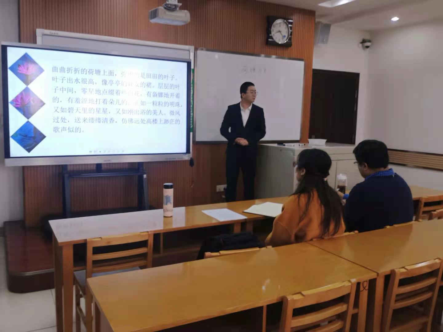 随后,评委分别从教学目标、教学手段、教学思路等方面进行了提问,对选手优秀的教学设计、扎实的基本功底、流畅的教学语言和自然大方的教态表示了肯定,同时也逐一指出了选手在模拟授课中暴露出来的不足并提出了宝贵的建议。其中,评委提出教师要有清晰的教学思路,根据教学目标设计好主问题、辅问题;课堂可以有多重风格,但切忌喧宾夺主;教学内容要基于文本并超出文本,关键在于提升员工的综合能力;应当与员工进行沟通交流,用简洁生动的语言吸引员工的注意力,引导员工深入思考;另外,评委还针对现代诗歌教学、文言文教学等专业模块对选手提出了建议和指导。
