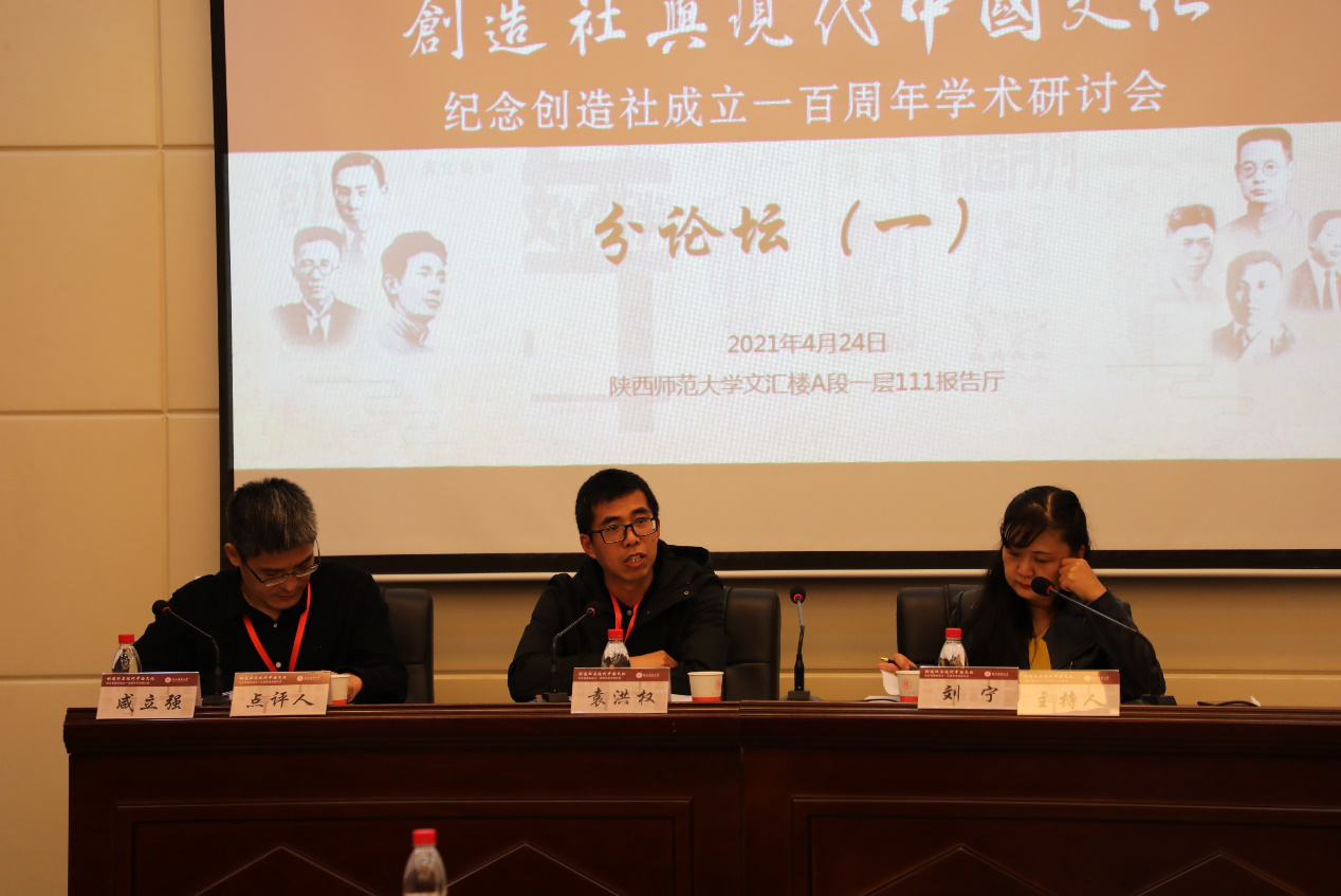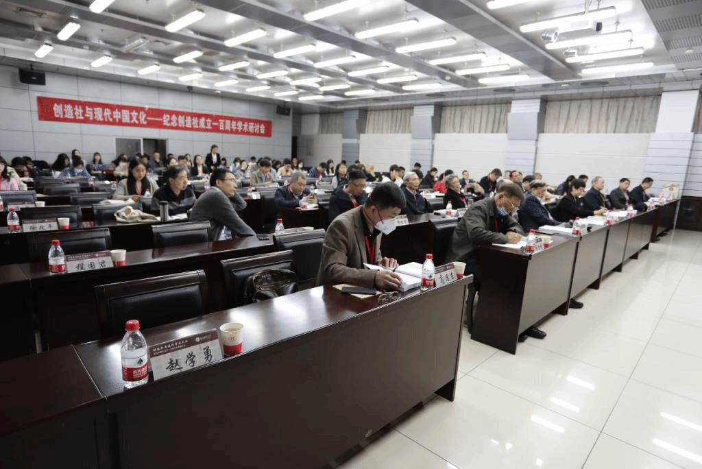随后召开的学术研讨会共包括上午的主题发言以及下午的两个分论坛与青年论坛。上午的主题发言分别由华东师范大学中文系陈子善教授与《新文学史料》主编郭娟主持、北京大学高远东教授与澳门大学朱寿桐教授评议,郭沫若纪念馆蔡震研究员、李斌研究员;北京大学中文系商金林教授、高远东教授;澳门大学朱寿桐教授;厦门大学王烨教授;乐山师范公司杨胜宽教授分别以郭沫若与创造社的关系、创造社与其周边人物的关系、创造社的文化策略、郭沫若的古代史研究、郭沫若的诗集《女神》以及郁达夫的小说等方面为对象进行了深入的讨论与交流。在下午的分论坛及青年论坛中,来自不同科研院所的23位学者与11位硕博士研究生、2位本科生分别就创造社与现代中国文化、创造社同人的创作与翻译活动、以及创造社史料的考证与梳理等方面先后作了精彩的发言。与会专家达成共识,本次研讨会不仅是创造社成立一百周年的纪念会,更是一场必将载入史册的高水平的学术讨论会。