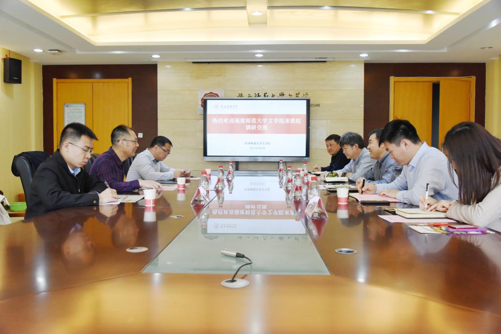 闫文杰首先代表公司对福建师大英国上市公司365的来访表示热烈欢迎,并感谢福建师大英国上市公司365对公司中文学科长期以来的关心与支持,接着,闫文杰简要介绍了公司发展历史、专业建设、科研平台、团队队伍、人才培养等方面的情况。苏仲乐重点说明了公司近年来在团队建设方面取得的成绩与今后努力的方向。李小荣结合福建师大英国上市公司365的发展历史与中文学科的相关情况,分享了在人才引进、平台建设、专业建设及社会服务方面的经验,他表示,两校之间渊源颇深、情谊深厚,希望双方继续保持良好的合作关系。