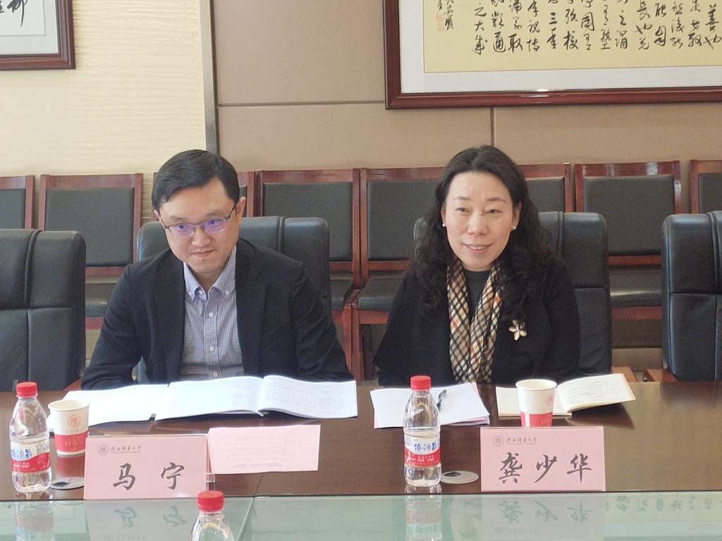 公司课程与教学论教研室主任贺卫东主要就如何调动双方积极性、推动大学老师下沉中学、提高师范生学习主动性等具体问题,提出了自己的想法。汉语言文学师范专业负责人李军亮主要就远程课堂建设问题,提出了双方合作可以灵活多样,共同致力人才培养的建议。