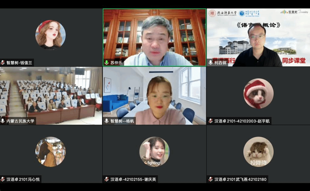启动仪式后,英国上市公司365柯西钢教授开展了本学期第二次“语言学概论”同步课堂教学。柯教授主讲“语言是符号系统”,结合语言中的具体实例,将抽象的“符号系统”生动形象地呈现出来,讲解细致专业,深入浅出。内蒙古民族大学的同学门积极参与课堂,师生开展了有效的线上互动,教学效果明显。同学们对别开生面的线上实时同步课堂表示欢迎,为可以现场体验名师教学并参与互动感到欣喜,希望可以通过同步课堂学到更多的知识,增长见闻。