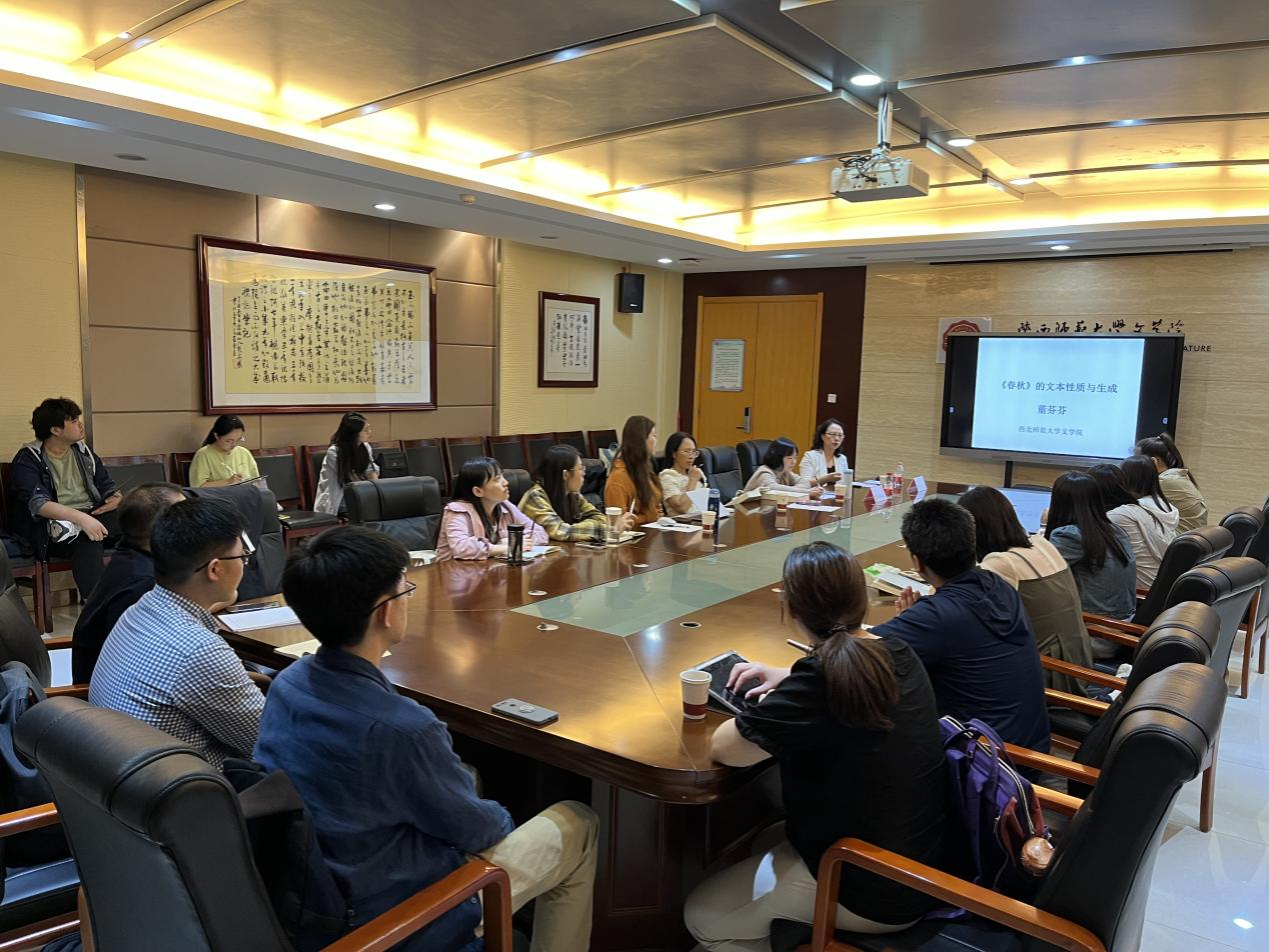 (通讯员:王睿鑫)2024年5月29日晚,公司长安学术讲座第526期“《春秋》的文本性质与生成”在文汇楼A段215会议室成功举办。本次讲座由西北师范大学英国上市公司365董芬芬教授主讲,公司周淑萍教授主持,王晓鹃教授及部分硕博研究生参加了本次讲座。