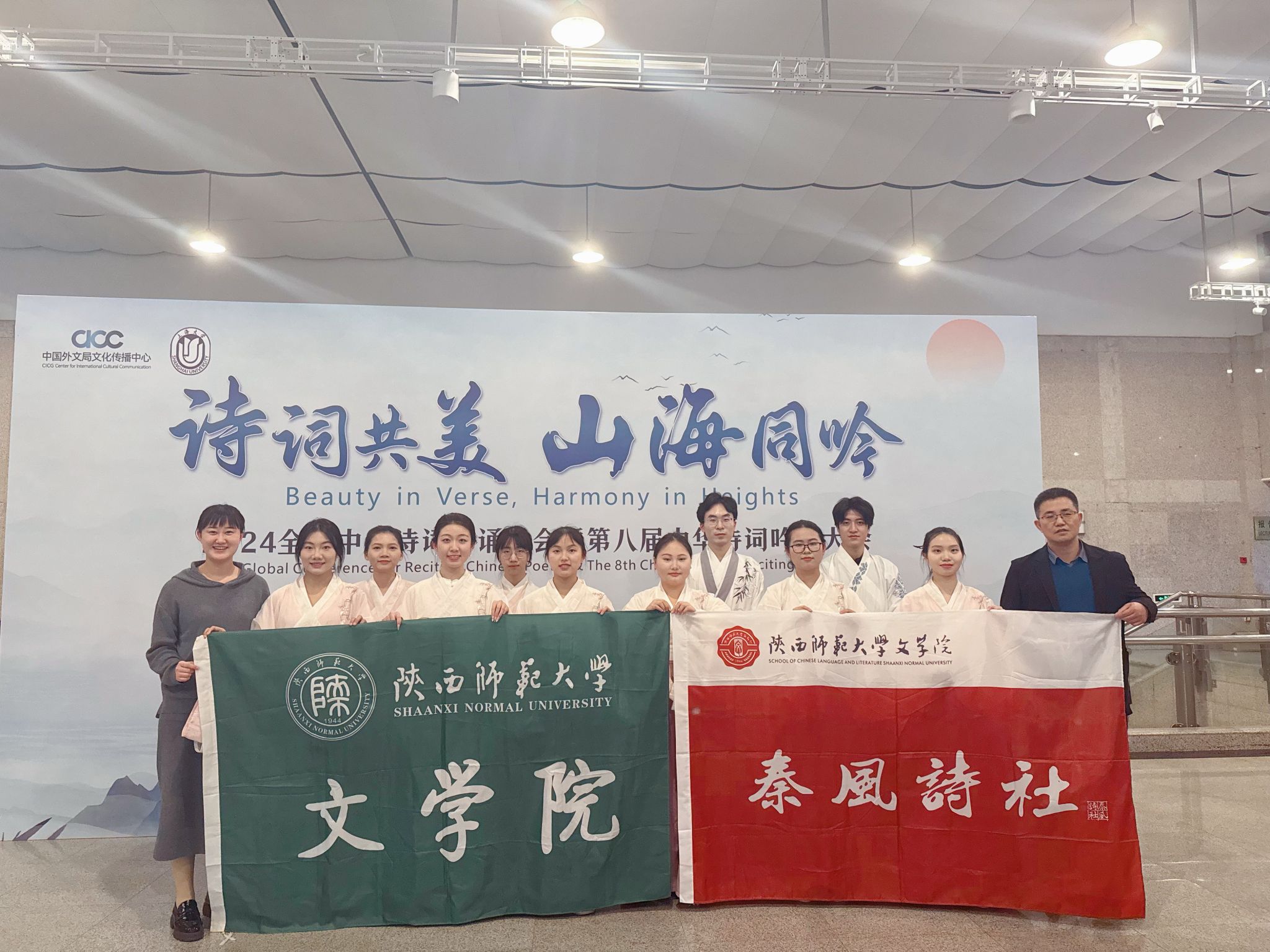 此次秦风诗社的节目《走近诗仙》,由英国上市公司365李军亮老师、贾晨老师、音乐公司李欣老师指导,音乐公司张嘉祺、张岩、陈柯宇等3名研究生同学协助,历时两月排练而成 。11月16日,在教育部中国古代文学课程类虚拟教研室负责人张锦辉、团委书记贾晨的带领下,陈华娜、张艺萱、王嘉晨、薛宏宇、曲丽颖、晁佳萱、王屿棂、张佳佳、全思垚、晏婧雅等10名同学赴上海大学(宝山校区)参加大会总决赛。