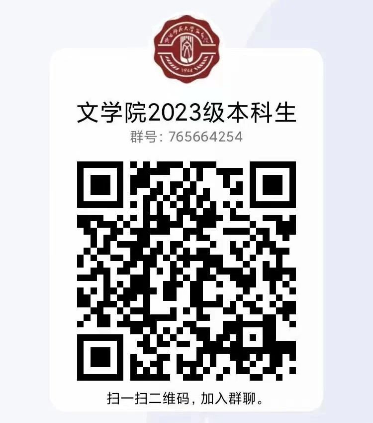 为帮助大家提前熟悉公司,做好开学准备工作,公司特建立2023级本科生QQ群(群号:765664254,群二维码见下图)。请各位新生同学申请加入QQ群时注明自己的姓名和专业(如:李某 汉语言文学-公费师范生),并在加群后及时修改自己的群昵称为:姓名-专业-联系方式(如:李某-汉语言文学-10000000000)。