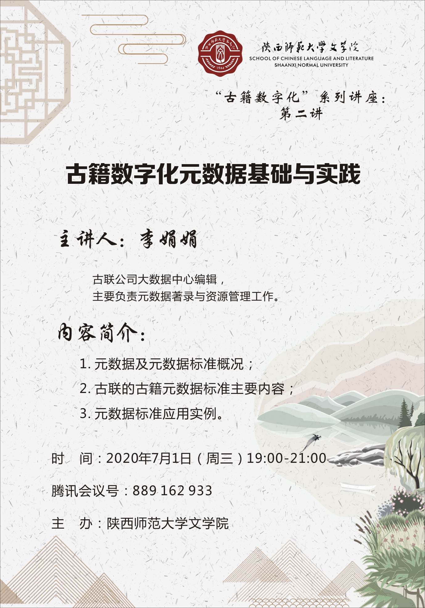 “古籍数字化”系列讲座(第二讲):古籍数字化元数据基础与实践
