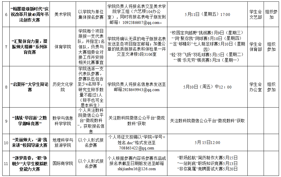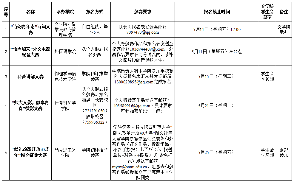 12项活动报名方式、截止时间详见下表: