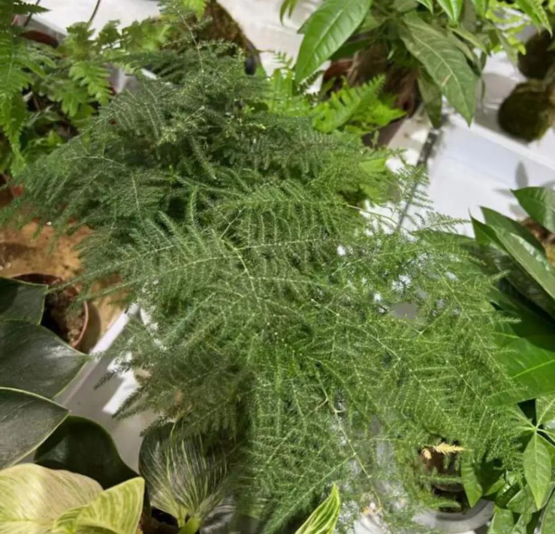 “文雅之竹”。文竹虽然不是竹,但是它的叶片轻柔 ,常年翠绿,枝干有节外形似竹,但与挺拔的竹子相 比,它又凸显出姿态的文雅潇洒,所以称为文竹。性喜温暖湿润和半阴通风的环境,冬季不耐严寒,不耐干旱,不能浇太多水,夏季忌阳光直射。室温保持在12-18 ℃之间为宜,超过20℃时要通风散热。